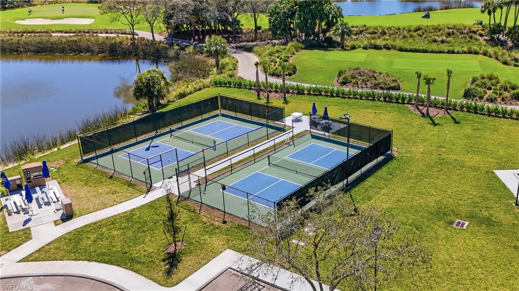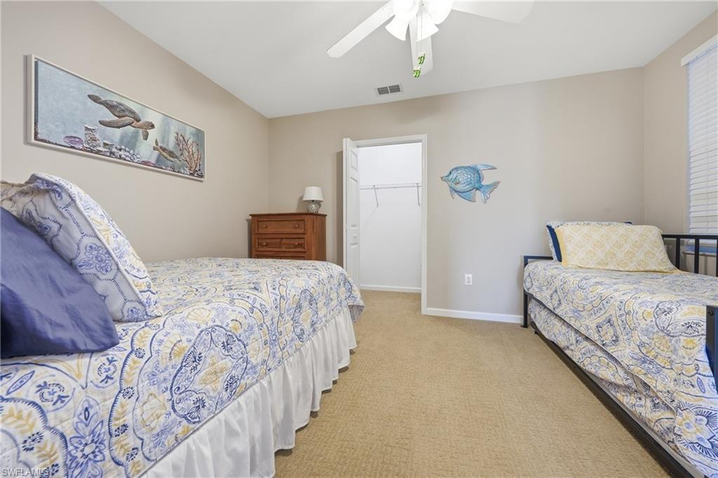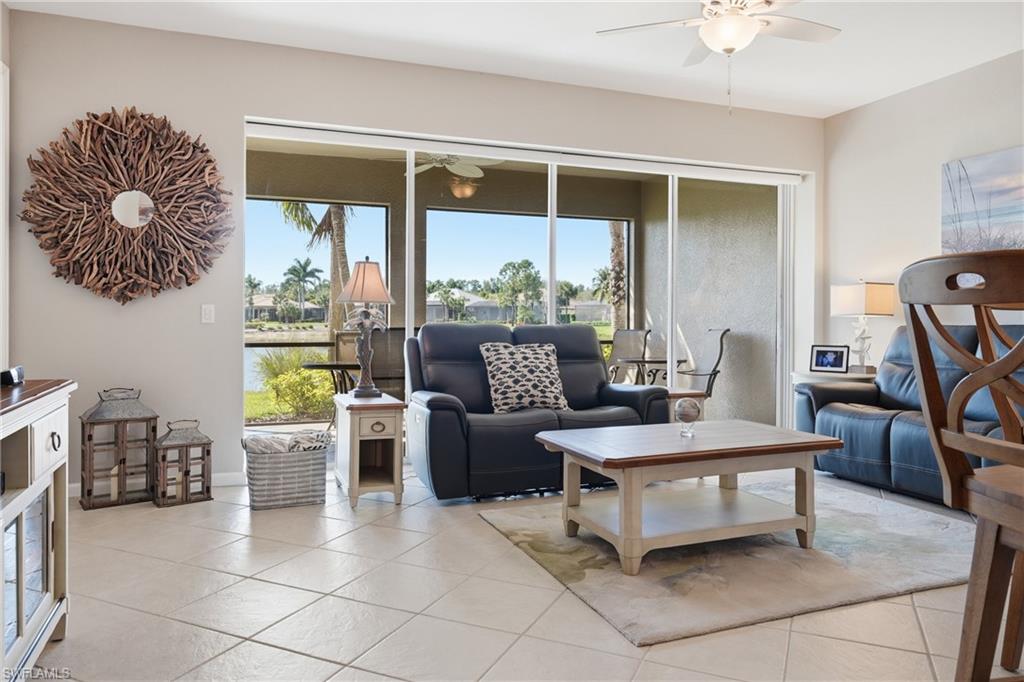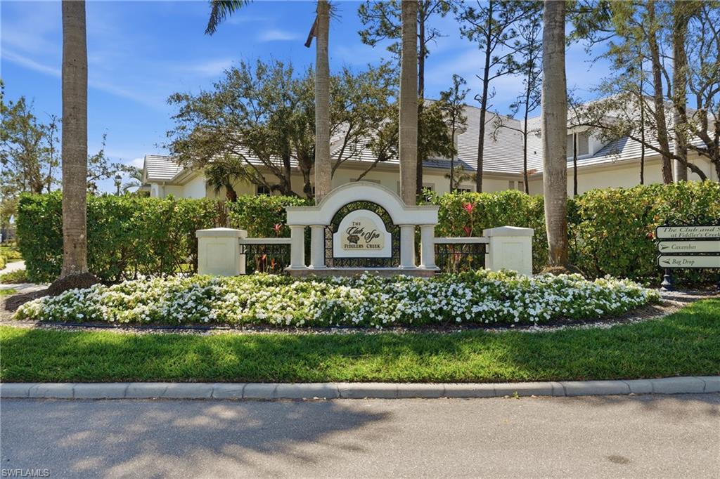 Fresh, light-filled and offered turnkey, this first-floor coach home in Deer Crossing at Fiddler’s Creek enjoys southwest exposure with peaceful lake and golf course views—delivering natural light throughout the day and beautiful sunsets in the evening. Thoughtfully designed with 1,957 square feet of living space, the split-bedroom floor plan offers privacy for guests and an easy, livable layout ideal for seasonal or full-time residence. The open kitchen features gas cooking, ample cabinetry and pantry storage, flowing seamlessly into the dining and living areas for comfortable everyday living and entertaining. The spacious primary suite overlooks the lake and golf course and includes a walk-in closet, dual sinks, and a walk-in shower. A screened lanai provides a serene outdoor setting surrounded by manicured fairways and water views. Recent HVAC service completed February 2026, adding peace of mind for the next owner. Deer Crossing is a quiet, well-maintained enclave within award-winning, gated Fiddler’s Creek, offering access to resort-style amenities including a clubhouse, fitness center, spa services, dining, tennis, pickleball, marina access, and optional golf and beach memberships. Ideally located minutes from Marco Island, downtown Naples, beaches, and dining.