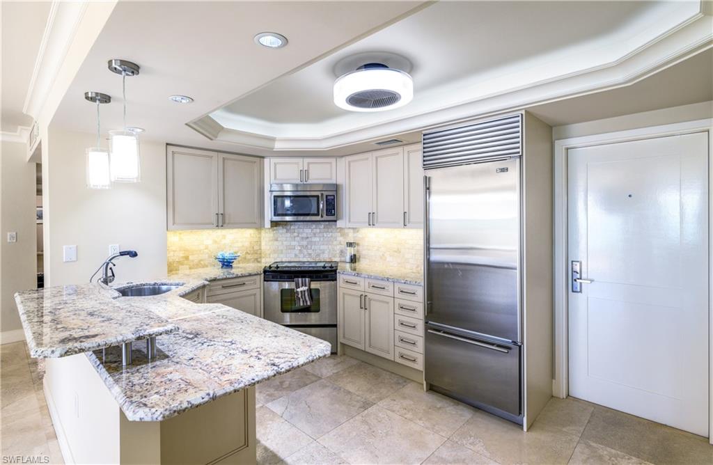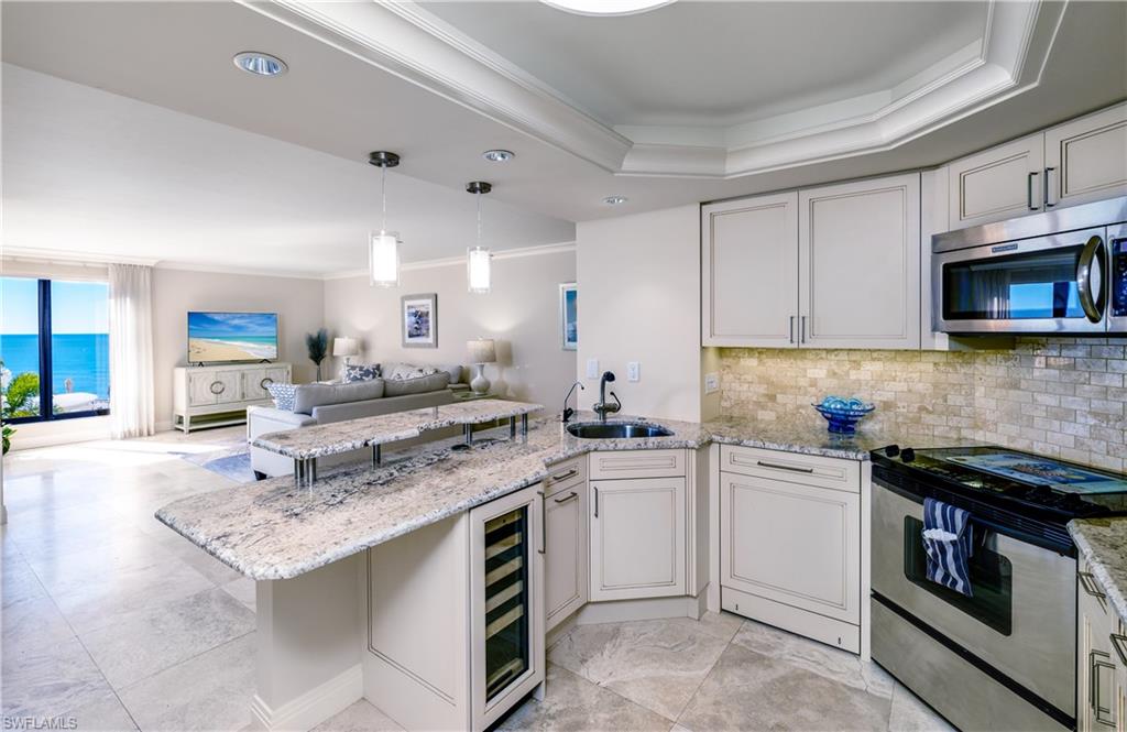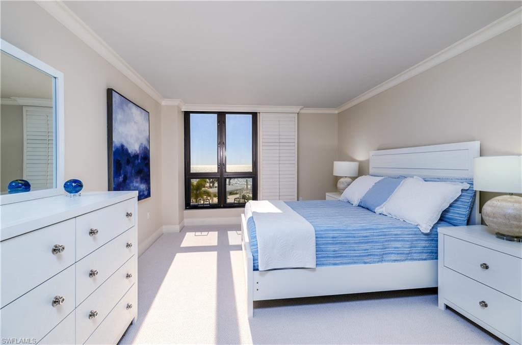 Treat your self to the best Valentines day gift ever! Experience elevated beachfront living at Lausanne on The Gulf, where timeless design and refined finishes meet sweeping Gulf vistas overlooking the new pool deck plaza. From Sunrises to Sunsets, Residence 303N enjoys preferred southwest-facing gulf views with 2 Bedrooms, 2.5 baths turnkey furnished featuring 1,590 square feet of beautifully updated living space, enhanced by 20-inch travertine stone flooring, plantation shutters, solid core doors, Downsview cabinetry and premium Sub-Zero and Miele appliances. Step onto the covered balcony to enjoy tranquil coastal breezes and the relaxed elegance of Naples’ waterfront lifestyle. The primary suite is a peaceful spa-like retreat, featuring an oversized walk-in shower, sitting area, separate water closet and Kohler fixtures. Customized walk-in closet with plantation shutter doors, shelving and flexible hanging spaces. Additional highlights include two designated secure under-building parking spaces, a large storage space on the garage level, and full hurricane protection for added peace of mind. Lausanne’s amenity experience is in the final phases of an extensive $15 million dollar transformation created by Josie Presar Designs, far beyond cosmetic updates, bringing a fresh, modern feel to every shared space. The 600 foot resort-style pool deck plaza was completed in 2022 and features a new trellis shaded areas, bathhouse with saunas, bocce courts, corn hole, an expansive pool, firepit, open turf play areas —ideal for entertaining. Additional enhancements currently nearing completion include 2 re-imagined lobbies, 2 updated social rooms (one with a sportie theme and other for hosting events/parties, billiards and multi-card rooms, a dedicated yoga room, and an enhanced fitness center and updated grilling areas. Ideally positioned on Naples white sandy shoreline, Lausanne offers amenities seldom found on the Naples beachfront, complemented by superb management and 24-hour security. Conveniently located to Venetian Village, Waterside Shops, and downtown Naples, you’ll enjoy an exceptional shopping and dining experience just minutes away.