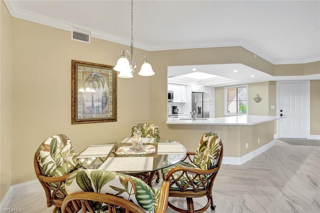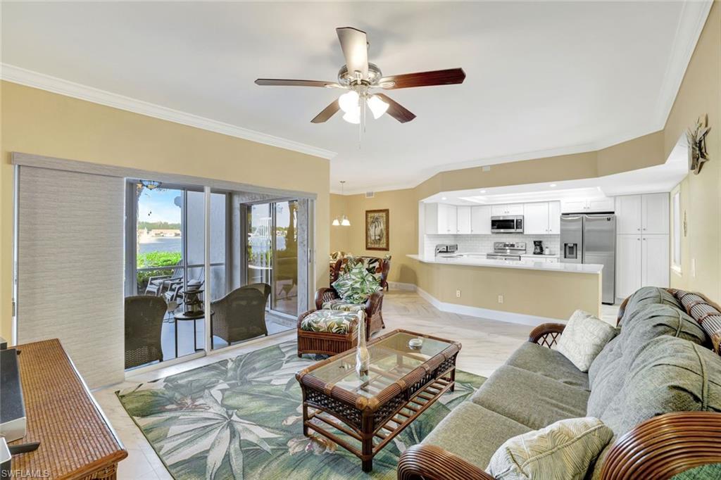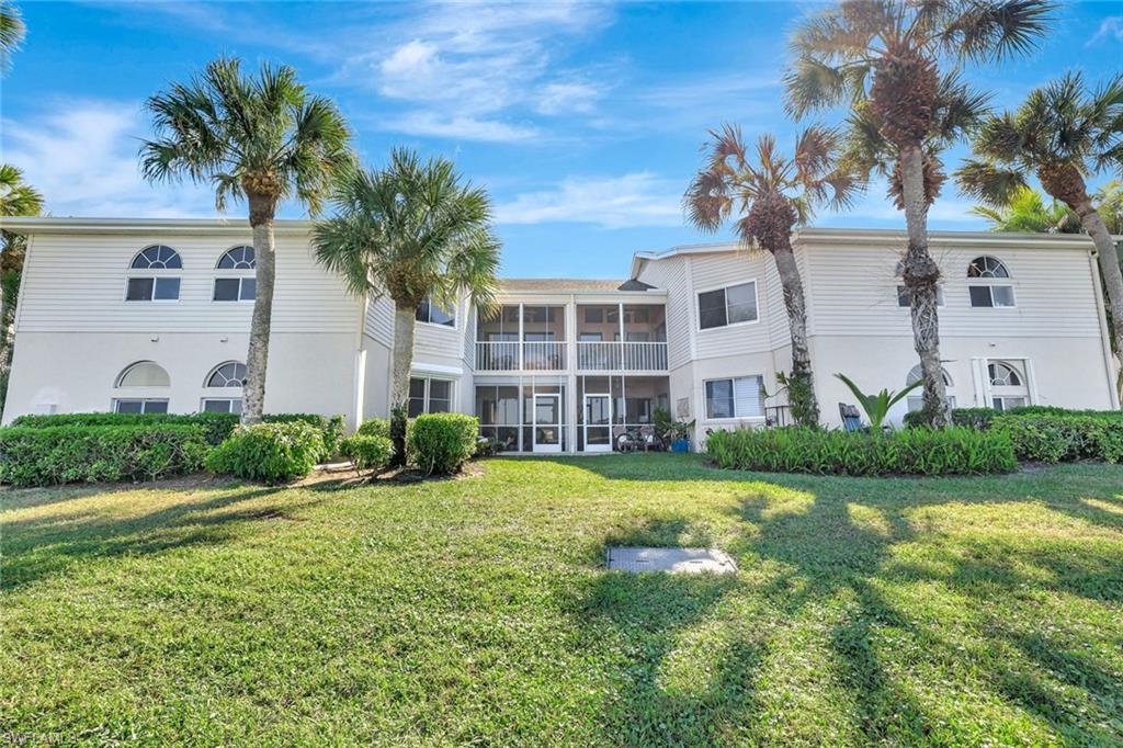 Stunning 40-acre lake views provide the breathtaking backdrop for this beautifully finished and upgraded first-floor condo. Light, bright, and open, this spacious residence is filled with sunshine and is ideal for both year-round and seasonal living.Remodeled kitchen with stainless steel appliances, quartz countertops, and tile backsplash.Beyond the tiled lanai, an expanded tiled patio creates a striking visual welcome the moment you enter. Additional upgrades include crown molding, renovated bathrooms, brand-new tile flooring throughout, and electric roll-down shutters on the lanai. Lakeside has two community pools, and the charming Old Florida–style clubhouse offers a full array of amenities including pool, fitness and weight room, sauna and showers, kitchen facilities, library, game room, pickleball and tennis courts, shuffleboard, bocce, and basketball. Ideally located just minutes to Mercato, about 10 minutes to Vanderbilt Beach, numerous dining options, and a scenic 1.5-mile walking path. Catch and release fishing are permitted along with kayaking! Covered carport and private storage closet included Building roof replaced in 2018. A true gem!