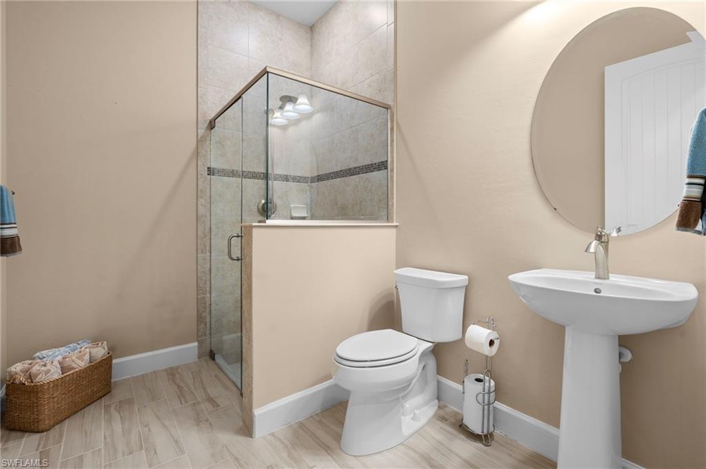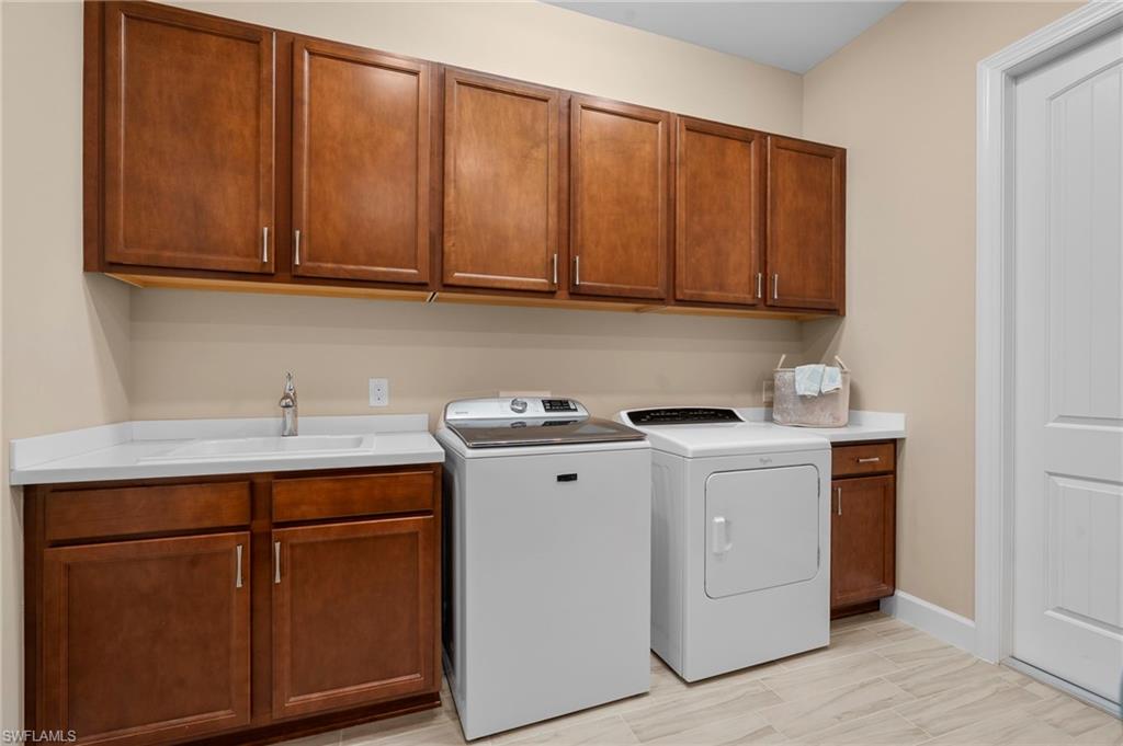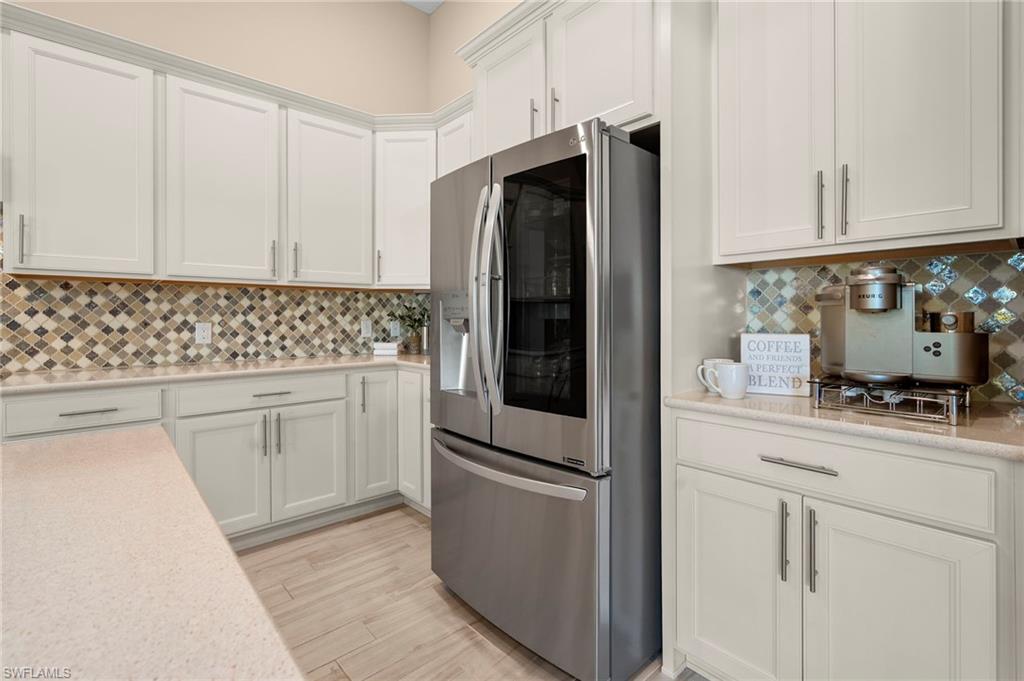 Pristine, move-in ready home offers 4BR+DEN, 3BA, 3CG and almost 3100 sqft on one level including an east/west exposure on a spacious lot. Incredible value for this sophisticated home for all that's included - WHOLE HOUSE GENERATOR, WHOLE HOUSE SURGE PROTECTION, WHOLE HOUSE KINETICO WATER SOFTENER, HURRICANE IMPACT WINDOWS & DOORS, ZERO CORNER SLIDERS. REMOTE CONTROL ELECTRIC SHUTTERS FOR LANAI & FRONT DOOR, AC IN GARAGE PLUS 4' EXTENSION & EPOXY COATING, RECESSED LIGHTING IN ALL INTERIOR ROOMS, HOT WATER HEATER RECIRCULATING PUMP, HUNTER DOUGLAS WINDOW COVERINGS, SMART HOME TECHNOLOGY & PRE-PLUMBED & WIRED FOR A CUSTOM OUTDOOR KITCHEN (please see full list of upgrades as too many to mention here). Neutral interior includes plank tile flooring throughout main living areas, a gourmet kitchen with built-in appliances and upgraded cream cabinetry & appliances, quartz countertops and stylized backsplash. Plus! the oversized laundry room with flex space off the garage is unlike any other in the community. This unique space can easily serve as a hobby room, secondary prep kitchen, home office or additional storage. Corkscrew Shores is a gated, resort-style lake front community with main clubhouse, restaurant & bar, pickleball, tennis, bocce, fishing pier, kayak/canoe launch, organized activities & events and a sparkling 240-acre lake at the heart of the community. Located close to destination shopping, Hertz Arena, FGCU and SWFL airport for easier travel. Estero is the hottest growing area in SWFL, nestled between Naples and Fort Myers. NO FLOOD ZONE AND NO MANDATORY CLUB FEES, NO CDD FEES.