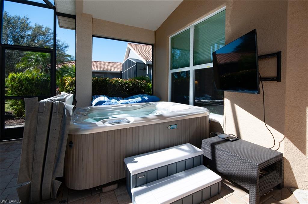 Step into your own private resort in the heart of Estero’s sought-after Belle Lago community. This upgraded 3-bedroom, 2-bath Toll Brothers residence offers move-in-ready luxury with a rare combination of style, comfort, and major infrastructure upgrades already completed. Outdoor living takes center stage on the expansive south-facing lanai, where a saltwater pool with cascading waterfalls creates a serene backdrop for relaxing or entertaining. A Hot Springs Jetsetter spa enhances the resort-style experience, making evenings under the stars feel effortlessly indulgent. Inside, the home is equally impressive. The kitchen features updated cabinetry, under-cabinet lighting, and reverse osmosis water filtration, while designer lighting and fans elevate every space. The custom primary bath delivers a spa-like retreat, and the versatile third bedroom includes a custom queen Murphy bed with integrated workstation, perfect for guests or a refined home office. This residence truly stands apart with its extensive behind-the-scenes upgrades, including a new 2025 Goodman variable-speed AC system, expanded ductwork with additional cold-air returns, a full-house generator, impact-rated windows and garage door (2025), and an impact-screened front entry. The epoxy-finished garage, custom landscaping, and architectural low-voltage exterior lighting complete the home’s polished presentation. Golf cart living is a standout perk. Enjoy optional golf membership with no waitlist at Estero Country Club, recently voted Best of Lee County 2025, with access via a private, secure golf cart gate connecting the communities. Tennis, pickleball, dining, and social events are all just a short ride from your front door. Ideally located near premier shopping, dining, beaches, and Southwest Florida International Airport, this home offers the rare opportunity to skip the renovations and simply arrive. Every upgrade is done. Every detail is considered. Luxury living starts here.