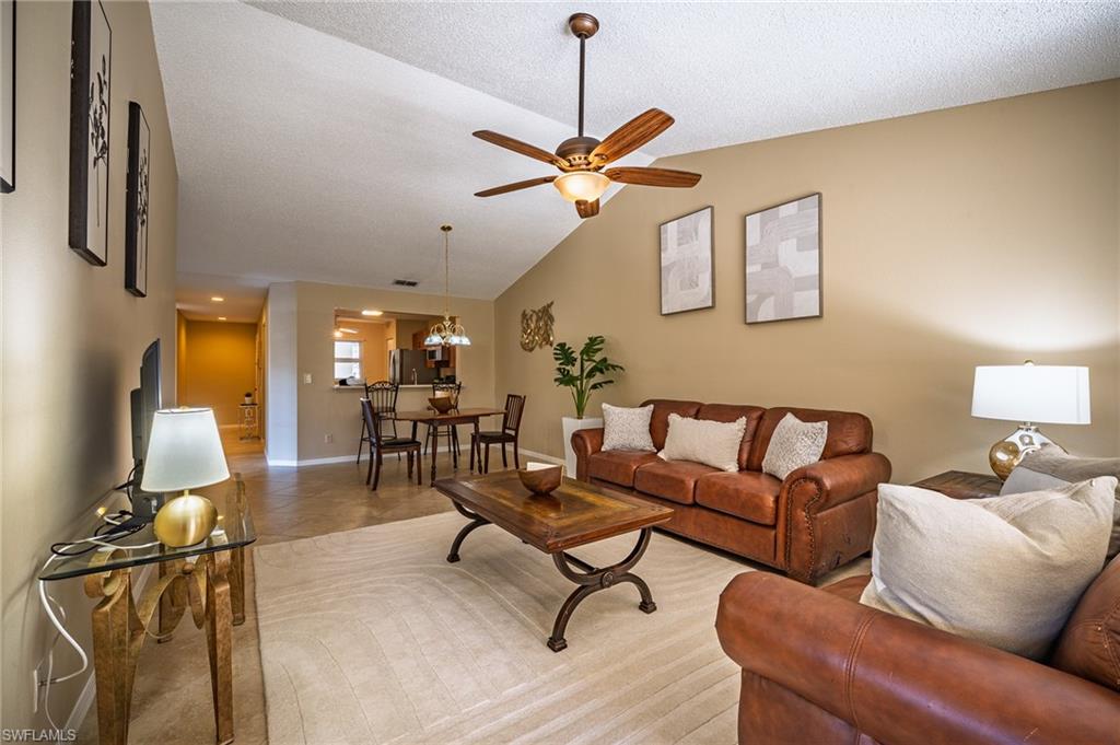 Welcome to this refreshing retreat in the heart of Naples: Newcastle at Berkshire Lakes. This charming second-floor end unit is filled with natural light and offers the perfect blend of comfort, style, and convenience. Featuring 3 bedrooms, 2 bathrooms, and 1,450 sq. ft. under air, this spacious residence is designed for easy Florida living. The private preserve view creates a peaceful setting ideal for relaxing or entertaining, while two community pools provide resort-style enjoyment just steps away. Inside, you’ll find 42" wood cabinetry, quartz kitchen countertops, stainless steel appliances, a breakfast bar, and an eat-in kitchen. The vaulted cathedral ceiling enhances the condo with an airy, light-filled ambiance, creating a sense of spaciousness and architectural elegance that makes the living area feel larger and more inviting. 2025 AC compressor. Additional highlights include a large laundry room with new washer and dryer, fans with lights throughout, a spacious dining area, and a generous living room. Enjoy peace of mind with accordion storm shutters , and an important community upgrade: Newcastle has replaced all polybutylene plumbing with durable PVC piping. Located just minutes from Downtown Naples 5th Avenue, pristine white-sand beaches, and I-75 access. Enjoy peaceful lakeside walks and scenic paths that meander around several of the community’s lakes, with popular routes of around 1.2 miles connecting to the clubhouse, fishing pier and amenities. You can also walk to Berkshire Lakes Commons Plaza with Publix, Walgreens, banks, gas station, and dining options. Freshly painted and meticulously maintained, this inviting residence offers a serene lifestyle in one of Naples’ most convenient locations. Schedule your private showing today and experience the best of Naples living!