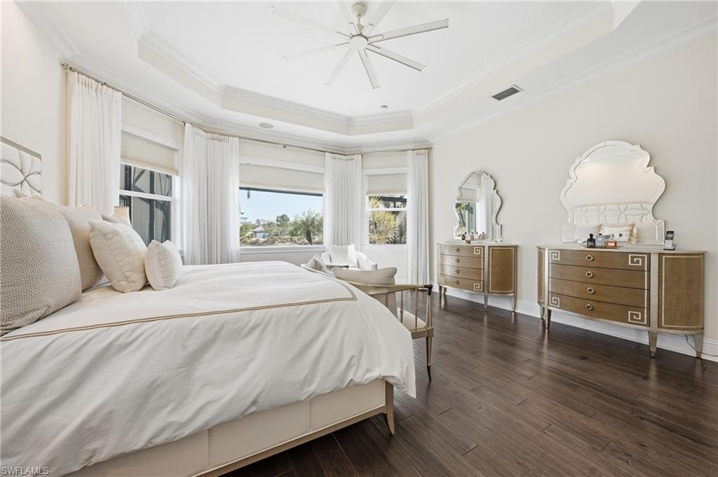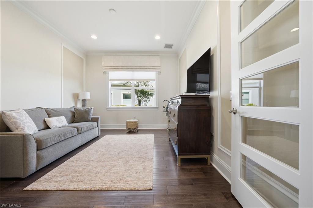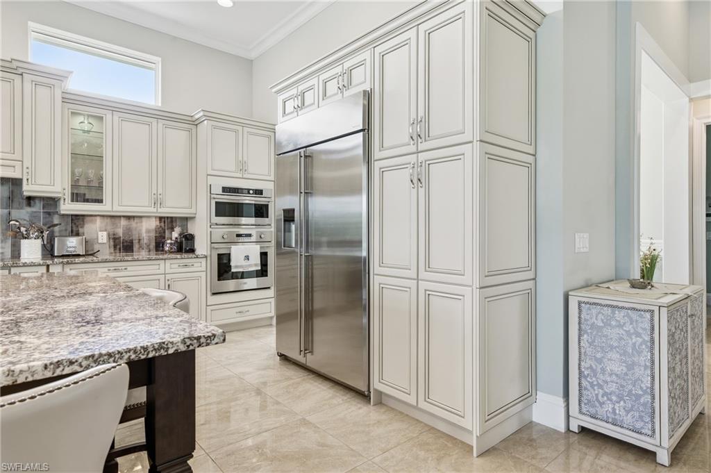 Wake up to shimmering lake views, quiet mornings, and effortless luxury in this exceptional Isles of Collier Preserve residence. Tucked away on a peaceful cul-de-sac with ideal southeast rear exposure, this beautifully maintained 3-bedroom + den, 3-bath home offers nearly 3,000 square feet of refined living space and a private lakefront setting. Designed for both comfort and entertaining, the open great-room layout showcases soaring ceilings, elegant architectural details, marble and hardwood flooring, and custom finishes throughout. The chef’s kitchen features white cabinetry, granite countertops, an oversized center island with prep sink and seating, double wall ovens, wine cooler, and seamless flow to the living and dining spaces—all framed by expansive water views. The primary suite feels like a private retreat, featuring French-door entry, custom walk-in closets, and a spa-inspired bath with soaking tub, walk-in shower, and tranquil lake vistas. Guest accommodations are thoughtfully separated for privacy, including a private en-suite bedroom and a versatile den ideal for a home office or media room. Outdoor living is a true highlight with a custom pool and spillover spa, picture-window screen enclosure, covered lanai with wood-plank ceiling, and a fully equipped outdoor kitchen with built-in grill, griddle, hood, and beverage cooler—perfectly positioned to enjoy the peaceful lake backdrop and lush landscaping. Additional features include impact-resistant windows and doors, flat tile roof, brick paver driveway, carriage-style garage door, and a two-car garage. Residents enjoy resort-style amenities including clubhouse dining, resort and lap pools, fitness and wellness center, kayak launch, scenic trails, tennis, pickleball, and bocce—just minutes from downtown Naples and Marco Island.