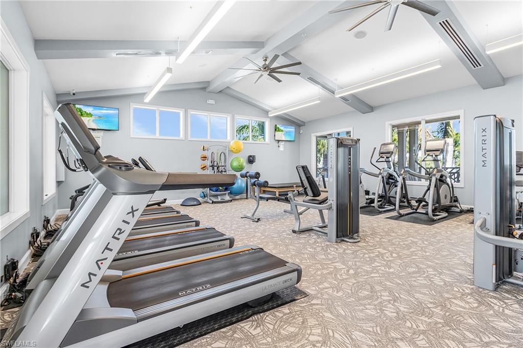 A well-designed two-bedroom plus den villa, attached to a neighboring residence, offering comfortable Florida living with lots of privacy and convenience. The kitchen has quartz counters, subway tile backsplash, stainless steel applicances, breakfast bar, pantry closet and lots of storage. Tile floors in main areas and neutral carpet in both bedrooms. The master bedroom has an en-suite bathroom with a walk-in shower and dual sinks, along with a large walk in closet. Spacious Laundry room inside residence. Manual shutters for all windows and doors . This home includes a two-car garage and an open, screened-in patio with tranquil views of lush Florida landscaping—mature trees, palms, and colorful flowering plants—perfect for relaxing or entertaining year-round. Situated in a desirable 55+ gated community in the heart of Estero, this neighborhood is known for its active lifestyle and strong sense of community. Residents enjoy amenities galore, including a fitness center, resort style heated pool, pickelball, tennis, bocci ball, and a wide variety of organized group activities and entertainment with an Activity Director in the community. Ideally located close to beaches, shopping, dining, and Southwest Florida International Airport, this villa delivers low-maintenance living paired with an engaging, social environment.