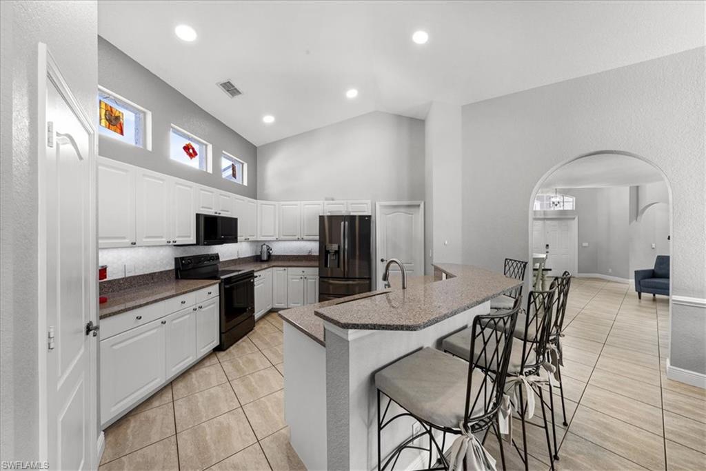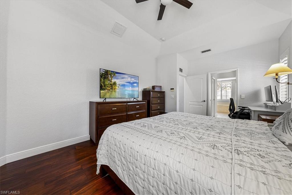 The space you want in the location you need, this four bedroom home offers a sprawling floor plan with heated pool and spa just 4 miles from the Gulf and its white sand beaches. With a new roof in 2019 and many recent upgrades, 297 Sawgrass Ct is the perfect place to call home. Step into a light and bright living space with high ceilings, transom windows, plantation shutters, and a fully tiled living area. The kitchen boasts a center island with breakfast bar, spacious pantry and newer LG appliance package, alongside crisp white cabinetry with natural stone countertops. Enjoy the utmost in privacy with a split floor plan, all centered around the huge screened lanai with a very private pool and spa with recently updated equipment in 2024 and abundant space for lounging or entertaining. All bedrooms have newer hand-scraped hardwood flooring. Primary suite with large walk-in closet, dual sinks, tiled walk-in shower and separate soaking tub. Across the home, find three additional bedrooms plus two full baths, including a second en-suite configuration perfect for guests, with private slider access to the lanai. A paver patio was added to the rear of the home in 2024. Tankless heater installed 2022 for on-demand hot water. Garage floor epoxied in 2024 for a fresh look and comes complete with an EV charger already installed! The home is nestled into a wooded lot with mature landscaping and beautiful trees gracing the yard, on a quarter acre of land. Lawn irrigation via private well saves big on water bills. Sawgrass of Naples is a small community of 28 homes in the Palm River area with a bucolic path leading to a children's playscape and small community park. Residents enjoy easy access to shopping and dining in North Naples, quick commutes via I-75 and a 10 minute drive to the beach. Super Low HOA fees of only $1432/year.