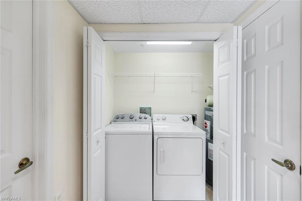 Wow - Bridgewater Bay - Outstanding Pricing!!! This first floor move in ready spotless lakefront unit is ready now!!!! With a detached garage, this condo centrally located in Naples is affordable and spacious. First floor, no stairs to worry about!!! The kitchen has plenty of storage and has an additional island that you can use for eat in counter space. The master suite is large, has two walk in closets, double sinks and walk in shower. The second bedroom suite is located in the front of the condo with a large closet and double windows that let in light all day long. The second bath has a tub, with a shower and there is a linen closet adjacent by the washer and dryer. Bridgewater Bay is known for its huge clubhouse with outdoor and indoor pools, meeting rooms, and many other amenities. Safe and secure with an entrance off of Livingston and the Main off Orange Blossom. Come take a peek!!!