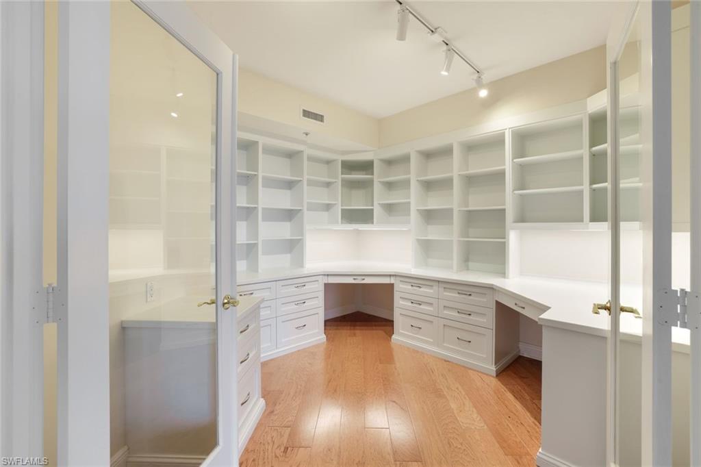 Luxury Living, Premier Location, Upscale Amenities & Investment Potential—All in One Exceptional Residence. This is the kind of home buyers wait for. Wall-to-wall glass, endless natural light, and wide-open coastal views stretch across McIlvane Bay, the Gulf, Marco Island, and the golf course, creating a daily backdrop that feels both serene and dynamic. Designed to blur the line between indoors and out, this Aversana residence is light, bright, and intentionally oriented to the view. The spacious screened lanai invites true outdoor living—morning coffee with bay breezes, evenings framed by sunset skies, and a constant connection to Southwest Florida’s natural beauty. Just minutes away are Marco Island’s white-sand beaches, dining, and entertainment, while Isles of Capri, directly across the way, offers waterfront restaurants, boating, kayaking, and endless outdoor adventures. Inside, the reimagined kitchen delivers both style and performance with a Viking cooktop, Café refrigerator, wine chiller, designer backsplash, and oversized windows that flood the space with natural light. A dedicated office with custom built-ins provides a polished, highly functional work-from-home space rarely found in condo living. The primary suite is a private retreat with luxurious new carpet and an exceptionally outfitted walk-in closet featuring built-in shelving and drawers for effortless organization. The guest bedroom offers stylish wood-look flooring, creating a comfortable and refined space for visitors. Aversana residents enjoy resort-caliber amenities including a panoramic pool and spa, fitness center with sauna, theater room, elegant social spaces, and guest suites. Two deeded garage parking spaces and climate-controlled storage add valuable convenience. The community is pet friendly, allowing two pets under 30 lbs, and offers an investor-friendly rental policy with two 90-day rentals per year, providing flexibility and the opportunity to maximize your investment. HIGH FLOOR. UNBEATABLE VALUE! Set within Hammock Bay, a Gold Certified Signature Sanctuary by Audubon International—one of only 45 communities worldwide to receive this highest environmental distinction—residents enjoy a rare balance of luxury living and preserved natural beauty. Ideally positioned between Naples and Marco Island, this residence offers views, lifestyle, and income potential—a compelling combination in one of Southwest Florida’s most desirable waterfront communities. Don’t miss out—see this property and get it under contract before someone else does.