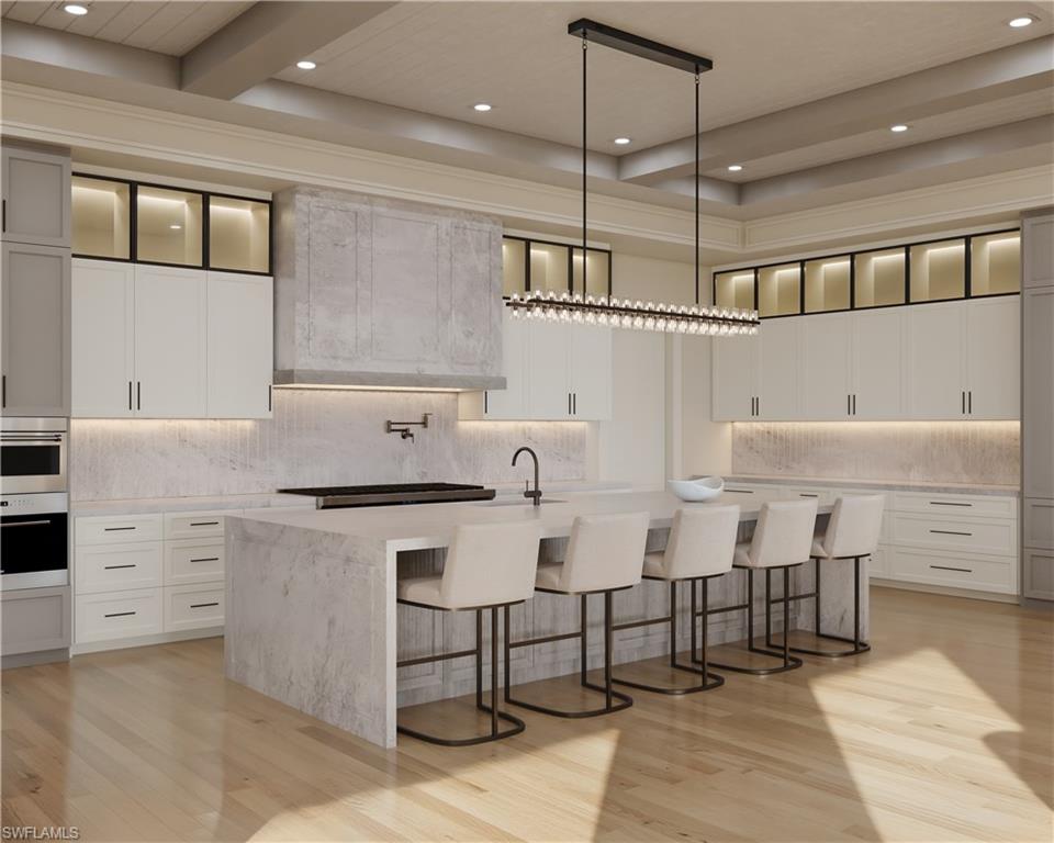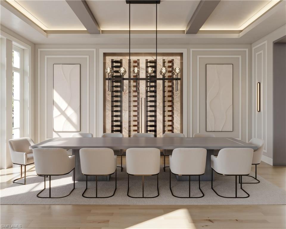 VIV Homes and Kukk Architecture present a truly awe-inspiring Legacy residence at the pinnacle of Port Royal luxury living. Set on an extraordinary oversized lot-and-a-half parcel with commanding, wide water vistas across Naples Bay, this rare homesite allows for an expansive architectural footprint, a gated entry, and one of the largest resort-style pool complexes in all of Naples, along with a substantial rear yard along the waterfront. The residence offers over 13,000 square feet of air-conditioned living space, featuring six bedrooms plus a study and exercise room, seven full and three half baths, a five-car garage, upper lounge, and two distinct pools and spas. Every element reflects uncompromising quality, from full concrete construction and slate roofing with copper gutters to limestone cladding, a grand entry fountain, and meticulously hand-selected natural stone finishes throughout. Interior refinements include bespoke Ruffino cabinetry, Poliform Italian-crafted closets, Legno Bastone wide-plank oak flooring, Cristallo quartzite countertops, a sophisticated bar, a formal dining room with a dramatic back-lit quartzite wine wall, and a dedicated wine room. Outdoor living is nothing short of extraordinary, offering resort caliber amenities with a fully equipped kitchen featuring grill and Evo, Renson motorized trellis, swim-up bar, five Tuuci umbrellas, and three outdoor fire features, including a striking sunken fire pit within the 90’ X 39’ main pool. A truly once-in-a-lifetime opportunity to own one of Port Royal’s most exceptional newly constructed estates. Expected completion December 2026.