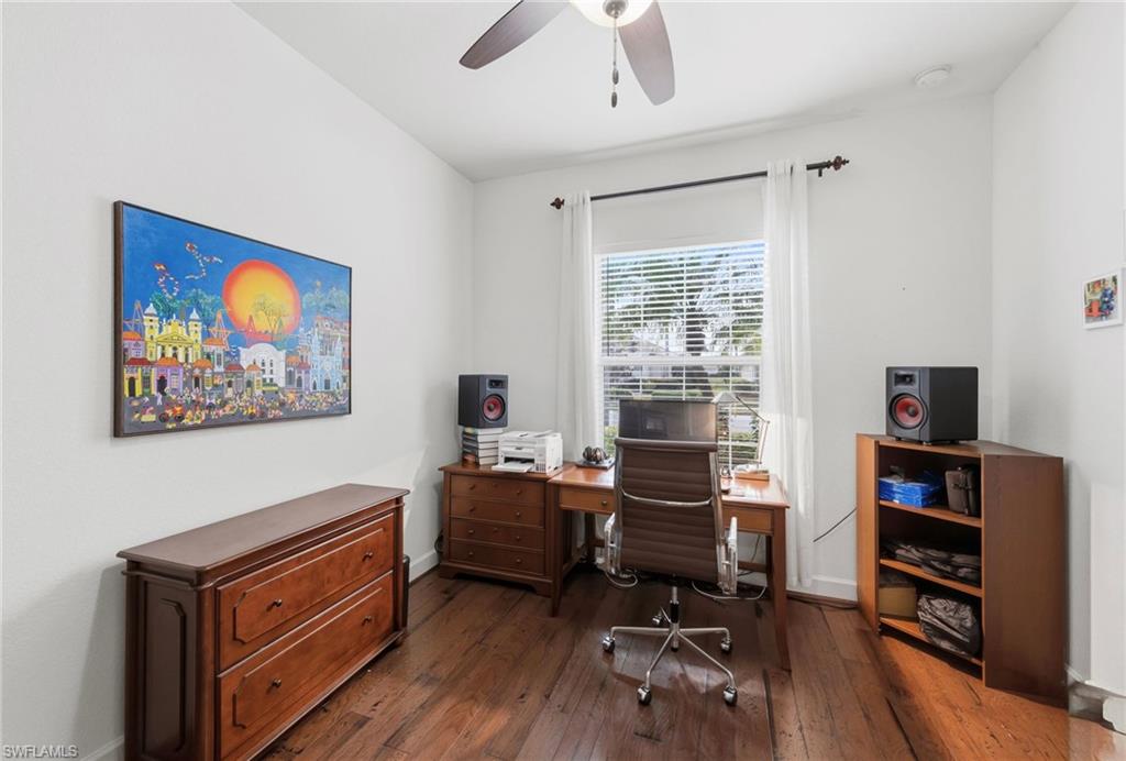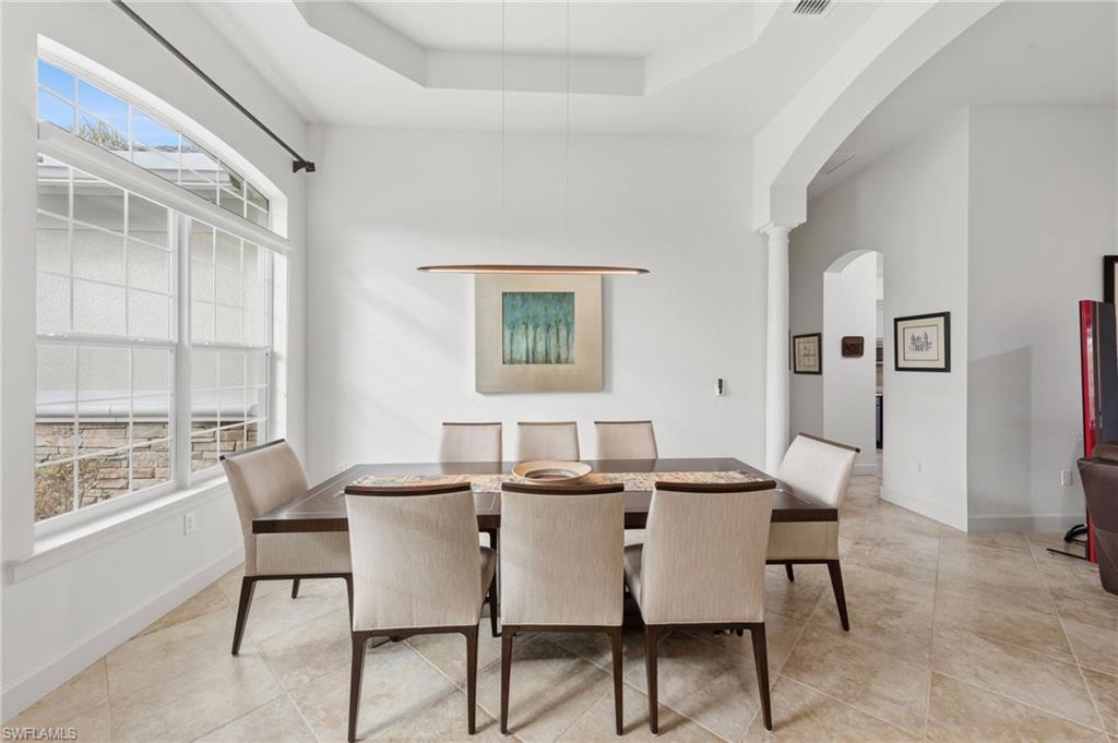 Discover this impeccably maintained 3 bedroom plus den open concept home in the sought-after Madison Park community of Naples, Florida, where serene lake views create a peaceful backdrop for everyday living. This thoughtfully designed residence features a desirable split-bedroom layout with a spacious living and family room, a flexible den perfect for an office or hobby space, a 2022 updated HVAC system, and hurricane-impact windows for enhanced security and comfort. Step through the elegant glass door entry with its transom window into a bright, open interior accented by diagonal tile flooring, soaring volume and tray ceilings, recessed lighting, graceful arched walkways, and ceiling fans throughout. The home flows seamlessly to expansive outdoor living areas, including a covered lanai that overlooks a sparkling solar-heated pool, spa, and tranquil lake views. The gourmet kitchen is a standout, boasting hard wood cabinetry, sleek quartz countertops, a striking mosaic tile backsplash behind the range, premium upgraded appliances—including an induction cooktop, microwave, and state-of-the-art Samsung Bespoke smart refrigerator—and a cozy eat-in dining nook framed by large windows capturing the pool and water vistas. The spacious living room extends effortlessly outdoors through sliding doors to the lanai, making it ideal for relaxed daily living or effortless entertaining. Retreat to the luxurious owner’s suite, a private oasis with beautiful wood flooring, white Hunter Douglas blinds, direct lanai access, generous walk-in closets, and a spa-like en-suite bath complete with dual granite vanities (including a makeup vanity), a full-width mirror, a walk-in shower, a separate jetted soaking tub, and a privacy window that fills the space with natural light. Two versatile guest bedrooms, both finished with modern wood flooring, share a well-appointed bath featuring a tub-shower combination. Outdoor enjoyment reaches new heights with the expansive covered lanai equipped with a ceiling fan, fully screened enclosure, solar-heated pool and flow over spa with stunning lake views. Electric storm shutters provide added convenience and protection. As a bonus, the home includes a complete solar panel system paired with a 30kW backup battery, resulting in an impressively low monthly FPL cost of just $25.66. Nestled in the welcoming Madison Park community—known for its scenic lakes, abundant natural preserves, fishing opportunities, and birdwatching—residents enjoy low HOA fees that cover lawn and landscape maintenance, irrigation, and high-speed internet. The prime location offers easy access to shopping, dining, vibrant downtown Fifth Avenue South, Marco Island, and Naples’ world-famous beaches. Experience the perfect blend of luxury, convenience, and Florida lifestyle in this move-in-ready gem.