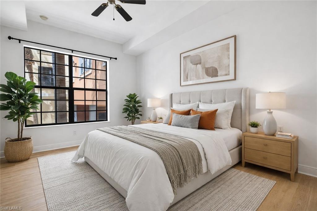 Experience elevated coastal living in this recently updated 2-bedroom + den, 2-bath residence in the highly coveted Residences at Coconut Point. Freshly painted throughout with brand-new luxury vinyl flooring in the bedrooms, this condo is truly move-in ready. From the moment you enter, you’ll appreciate the architectural details—soaring 10-foot ceilings, 8-foot solid wood doors, and an open, light-filled layout that feels both spacious and refined. Impact-rated sliding glass doors lead to a generous open-air, TILED lanai, creating seamless indoor-outdoor living perfect for enjoying Southwest Florida year-round. The thoughtfully designed split-bedroom floor plan ensures privacy and comfort. The primary suite features dual vanities, a separate soaking tub and shower, and an oversized walk-in closet. The guest suite offers ample space with its own full bath, ideal for visitors. A versatile den provides flexibility for a home office, reading lounge, formal dining space, or hobby room. A large utility room adds valuable storage and everyday convenience. This residence includes two parking spaces, with one reserved right under your building for exceptional ease and accessibility. Also included is a private, climate controled STORAGE UNIT, in the hallway just steps away from your door. Enjoy resort-style amenities including a sparkling pool and spa, fitness center, community room, BBQ area, bike storage, and vehicle wash station. HOA fees include premium cable, high-speed internet, water, sewer, and trash for simplified living. Located adjacent to the picturesque outdoor Coconut Point Mall, which features over 110 stores, offering vibrant shopping, dining, coffee shops, and salons—and only minutes from Hertz Arena, RSW International Airport, I-75, and the pristine shores of Bonita and Barefoot Beaches—this home offers the perfect blend of luxury, location, and lifestyle.