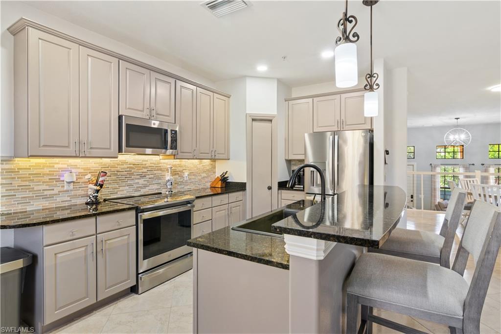 Prepare to be impressed—there’s truly nothing else like this exquisitely reimagined Santa Barbara townhome. Spanning 2,008 square feet, one of the community’s largest floor plans, this stunning residence has been fully renovated with an open-concept design that seamlessly connects the family room, dining area, and sophisticated entertainer’s bar. Featuring three spacious bedrooms, two and a half designer baths, and expansive covered lanais on both levels, this home effortlessly combines elegance with comfort. Recent upgrades include a newer HVAC system, new stainless steel appliances in a chef-inspired kitchen with beautifully painted cabinetry and a modern backsplash, upgraded designer lighting, new tile flooring throughout, fresh interior paint, and luxuriously remodeled bathrooms that exude contemporary sophistication. Enjoy sunny southern exposure and breathtaking evening sunsets from your private lanais—creating the perfect setting for both relaxation and entertaining. Ideally located, this property is just steps from the vibrant Ole Resort Town Center, offering an array of resort-style amenities, including a stunning lagoon-style pool with waterfalls, a children’s pool, a café, pub, and bistro, as well as a movie theater, library, and a state-of-the-art fitness center. Sports enthusiasts will appreciate the basketball, bocce, pickleball, sand volleyball, and tennis courts available within the community. Nestled within the renowned Lely Resort, residents also have access to two public championship golf courses, scenic walking and running trails, serene lakes, and lush preserves. The HOA fees cover cable, internet, water, and full access to all Olé amenities, ensuring a stress-free, resort-style lifestyle. Experience the ultimate in luxury living in the heart of Naples, Florida!
