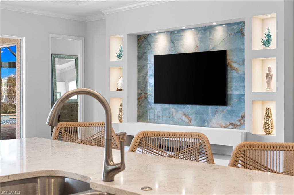 Discover the pinnacle of luxury living in this completely reimagined and redesigned Foxhall model at 10240 Gator Bay Court, nestled in the premier Heritage Bay Golf & Country Club. This home includes a full golf membership bundled and deeded to the property. Every inch of this residence has been thoughtfully planned and executed to create a true one-of-a-kind gem in Heritage Bay. Ideally located near the clubhouse, it offers unparalleled access to amenities and a huge panoramic rear view that captures the essence of Florida serenity. Stepping inside is a wonder: premium wide porcelain wood-look tile flooring flows seamlessly throughout, complemented by fresh exterior and interior paint, all-new baseboards and crown molding, plantation shutters, and a simply luxurious feel from front to back. Integrated beautifully into the open floor plan is a professionally redesigned kitchen that's a stunner—boasting custom cabinets and hardware, a bespoke exhaust hood, new stainless-steel appliances, premium granite counters, and tile backsplash. It flows effortlessly into the family room, which is adorned with an exceptional one-of-a-kind built-in TV area featuring blue agate tile and custom built-in lighting—you must see it to appreciate! The bedrooms are sanctuaries of comfort: guest bedrooms feature updated fixtures, new windows, Silhouette shades, and custom closets, while the front bathroom is nothing short of perfection with premium Kohler hardware. The master suite offers ultimate relaxation with new fixtures, new windows, Silhouette shades, his-and-her custom CraftsMaid closets, a walkout to the lanai, and a spa-like master bath featuring Kohler fixtures, custom cabinets with ceramic sinks, vanity light fixtures, a shower fan, and a premium waterfall tile feature with faux stone shower floor base. The den impresses with professional redesign, built-in cabinets and bookshelf, granite counter, french doors, and new fixtures. Outdoors, paradise awaits with color-matched hardscaping, professional custom front and back landscaping, a redesigned saltwater pool and elevated spa with custom sundeck, spillways, and LED lighting. The custom outdoor kitchen is equipped with granite counters, refrigerator, grill, professional exhaust fan, tile backsplash, and ceiling fan—all set on a paver pool deck. Best of all, it sits beneath a new panoramic pool cage with 20/20 screens and premium landscaping rocks surrounding the area! Heritage Bay embodies an amenity-rich, active lifestyle with a 24-hour manned gatehouse, a 27-hole Lewis-Azinger Champion Golf Course complete with aqua driving range, two practice putting greens, and Pro Shop. Indulge in the resort-style pool with Cabana Bar & Grill, state-of-the-art fitness center with sauna, pickleball courts, Har-Tru tennis, bocce, billiards, and three dining venues. This is more than a home—it's the Florida lifestyle you've been dreaming of. No other property compares to 10240 Gator Bay Court in Heritage Bay.