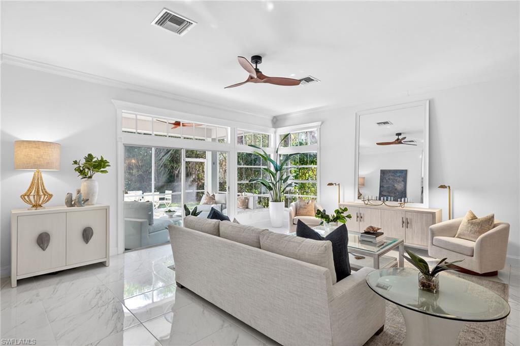 This recently refreshed property delivers exceptional style and is move-in ready! Walk to the club and all of the amazing amenities Wyndemere has to offer. Amblewood is a beautiful, tree-lined and pet friendly neighborhood. The updated 3-bedroom, 2-bath villa stands out with gorgeous tile flooring throughout, abundant natural light, a modern kitchen and an open floor plan. The generous primary suite features a walk-in shower, dual vanities, a tub and a large walk-in closet. Third bedroom can be office or room for extra guests. Beautiful and private outdoor space makes this property unique with a screened lanai and adjoining patio for Florida living and entertaining. A curated furniture package is available upon request. Move right in and enjoy the 2026 season in this incredible Platinum Club. Wyndemere, an award-winning 2025-2026 Platinum Club of America, offers unmatched amenities, including 27 holes of Arthur Hills golf, 10 HarTru tennis courts, pickleball courts with 165 stadium seating for pickleball pro exhibitions, active bocce teams, full croquet, a resort style zero entry pool, golf simulator, putting greens, driving ranges, 2 pro shops. A full-service spa, salon and state of the art fitness center with a full schedule of group exercise classes and personal training. Enjoy formal dining, as well as indoor/outdoor casual dining at the Tiebreaker, and a lively social schedule of events/parties at the club. Wyndemere, known for its friendly and welcoming membership, is ideally located within minutes to 5th Avenue world class dining, shopping and the spectacular sugar sand Gulf beaches. Live everyday like you are on vacation and come enjoy this amazing lifestyle!