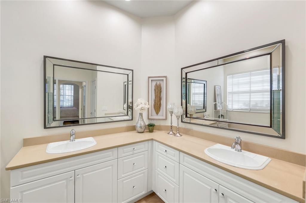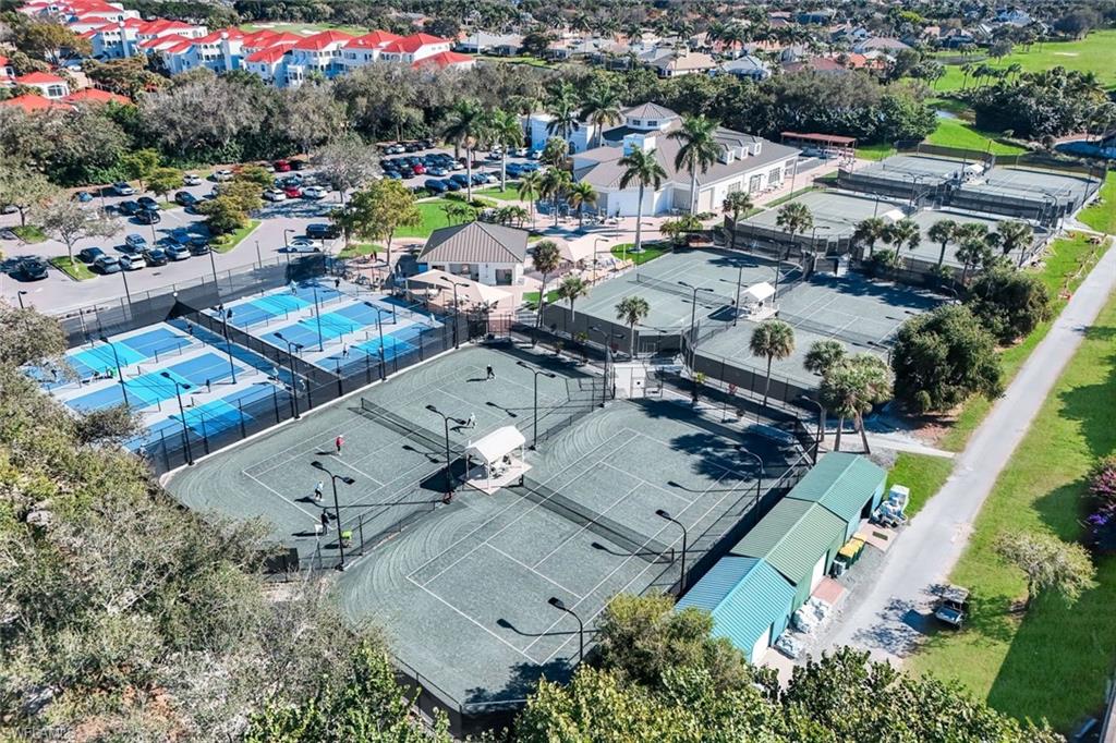 Located within a quiet, central setting of favored Pelican Marsh, Island Cove is a beautifully maintained community offering a community pool, ample guest parking & convenient proximity to a 4th gated entrance with direct access to the popular Galleria shopping center which has shopping, dining and fitness! This lovely 2 bedroom + den split-plan home features an updated kitchen with a natural wooden breakfast bar, light cabinets, stainless steel appliances plus a large dinette! In addition, updated bathrooms with an XL shower in primary bath. Serene lake views from the long, lap-style pool and lanai w/ a mood setting firepit, 2 dining areas, plus a large primary suite featuring 2 lg walk-in closets-both with immense mirrored sliding doors! Spacious 2 car garage enters through brick paved driveway and has new speckled create floors. Pelican Marsh provides an unparalleled lifestyle with a staffed fitness center, tennis and pickleball facilities, bocce, a vibrant Community Center nearby w/ on-site dining & socializing at the Courtside restaurant and 4 secure (3manned) gated entrances! Residents enjoy the convenience of fees which include Community Center activities, staffed gym w/ new equipment, massage, 3 Bocce courts, 8 tennis courts w/ professional lessons, & 6 pickleball courts also with professional instruction. Students in Pelican Marsh attend some of the area's top ranking schools including Pelican Marsh Elementary, conveniently located, across Airport Rd. from one of 4 Pelican Marsh's main gated entrances. Walking paths and sidewalks offer scenic trails winding through lush landscaping waterfront views & gorgeous natural preserves. Create your healthy, happy SW Florida lifestyle within Pelican Marsh!