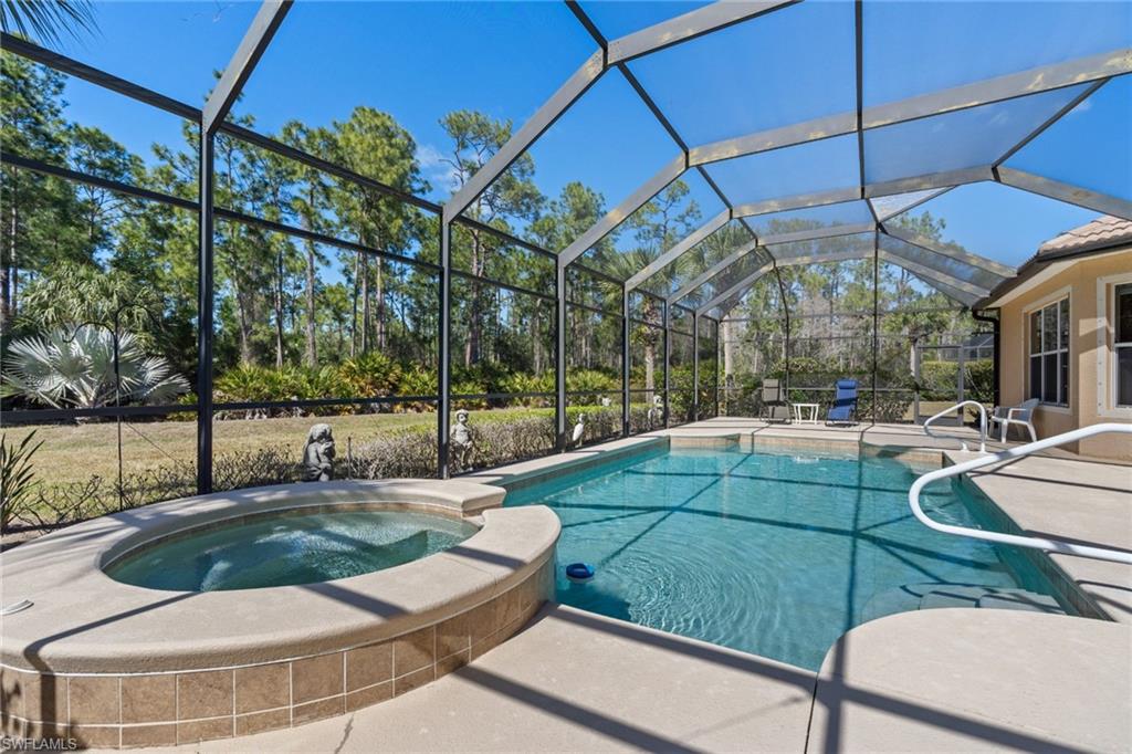Are you looking for a spacious and grand four bedroom, three bathroom home with a formal living and dining area plus an additional family room, high ceilings, a split floor plan and a pool and spa? This home has it all! With plenty of privacy on a pie shaped lot at the end of a cul-de sac and a beautiful preserve view and northwest exposure, this home has it all. Welcome to 7942 Founders Circle in Madison Park, a well-established Naples neighborhood known for its tree-lined streets, sidewalks, lakes, and natural preserves just 15 minutes from downtown Naples and easy access to Marco Island. With low quarterly HOA fees, the community offers a comfortable and easy lifestyle in an incredible location near plenty of shopping and dining, including the new Whole Foods that is coming in. Situated on a large cul-de-sac lot, this light and bright single-story home enjoys an expansive yard that is maintained by the association, offering space to enjoy without the upkeep. As you enter this nearly 2,800 square foot home, you will immediately notice the soaring ceilings and open concept formal living and dining area with picturesque views of your pool, spa and private yard. The split-bedroom floor plan provides privacy and space, while formal living and dining areas, a spacious family room, and open concept kitchen make for fantastic for everyday living and entertaining. The spacious primary suite features beautiful large windows overlooking the pool, dual walk-in closets and a large primary bathroom with a walk-in shower, separate soaking tub and dual vanities. A private pool and spa provide a relaxing setting for outdoor living. Built in 2006 with concrete block construction, a tile roof, and an attached two-car garage, the home offers generous interior space and a thoughtful single-story layout. This home won’t last. Come and get your slice of paradise today!