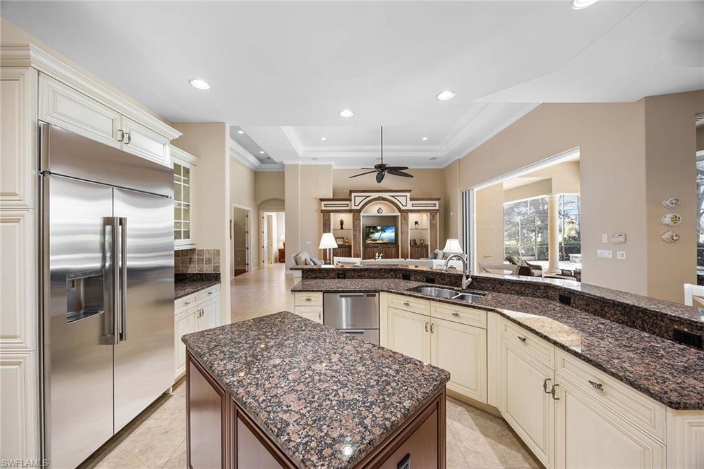 Welcome to an exceptional estate residence in the exclusive double-gated Majors at Lely Resort, where refined luxury meets effortless Florida living. This beautifully maintained Muirfield model is offered turnkey furnished and features four bedrooms plus a den, three-and-a-half baths, and an elegant, well-designed layout ideal for both everyday comfort and grand entertaining. From the moment you arrive, the home makes a statement with its custom double-door entry, opening to a light-filled interior enhanced by crown molding, custom plantation shutters throughout, upgraded granite countertops, stainless steel appliances, and fresh interior and exterior paint. Recent improvements also include a newer tile roof, updated HVAC systems, water heater, and a fully resurfaced pool and spa, reflecting meticulous care and pride of ownership. The open-concept floor plan flows seamlessly, anchored by a gourmet kitchen with walk-in pantry, generous cabinetry, and expansive gathering spaces designed to host with ease. Step outside to an outstanding outdoor living retreat, where a sun-drenched deck surrounds a heated pool and integrated spa, all set against long, private western sunset views overlooking the golf course—a perfect backdrop for evening relaxation or entertaining guests. Additional highlights include a three-car garage with ample storage, enhanced landscaping for a clean, polished aesthetic, and immediate access to The Players Club & Spa, offering resort-style pools, dining, tiki bar and grill, full-service spa, fitness center, billiards room, and premier tennis and pickleball facilities. Golf enthusiasts will appreciate Lely Resort’s three championship 18-hole courses, making this community truly unmatched. This is a rare opportunity to own a move-in-ready estate home in one of Naples’ most sought-after resort communities—where luxury, lifestyle, and convenience come together beautifully.