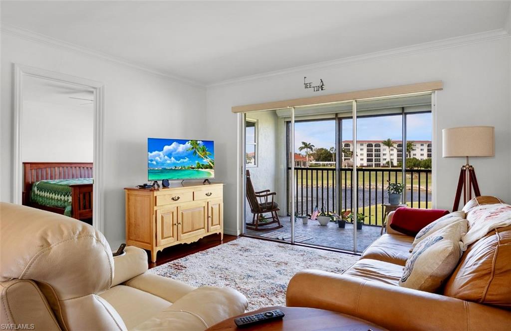 Sophisticated living space with a golf course view for a reasonable price! INCLUDES IMMEDIATE GOLF MEMBERSHIP FOR 2! Renovated kitchen with white cabinets, marble countertops, and warm dark flooring. Fresh neutral paint and furniture. Primary bathroom has a new extra deep soaking tub and shower. Watch golf from your upgraded lanai with a stone floor, or savor the tranquility of the wildlife enjoying the water hazard on hole #2. Located by 2/6 swimming pools, tennis courts, bocce, and pickle ball. Take a quick walk to the clubhouse and enjoy lunch in the restaurant during season. High Point Country Club is a very active community nestled between Downtown Naples and Park Shore - Venetian Village. You can bike or walk to Naples beaches. This community has everything you need to make Naples, Florida your warm sunny happy place!
