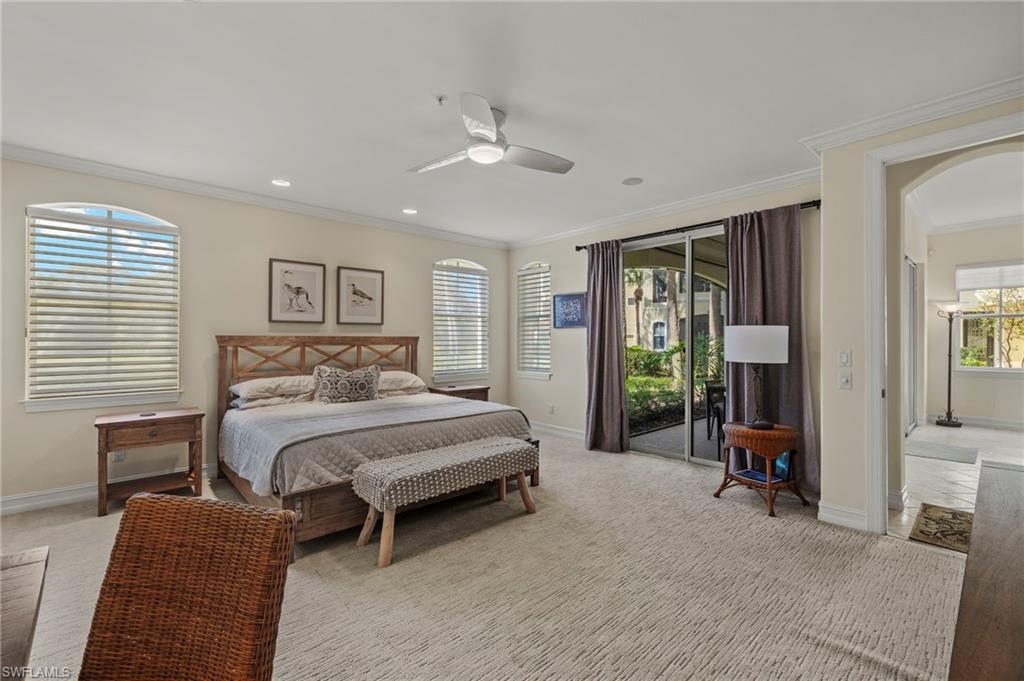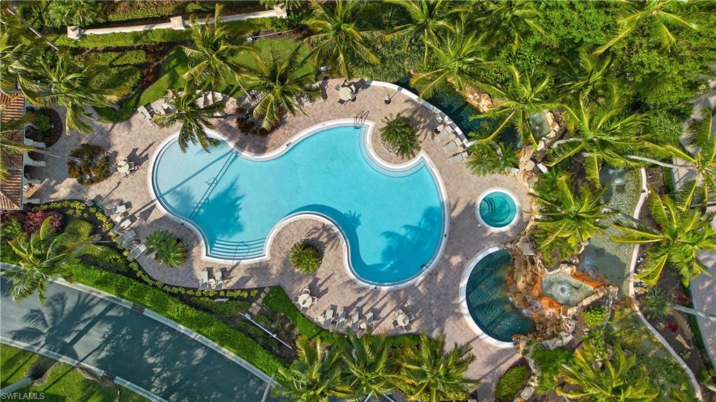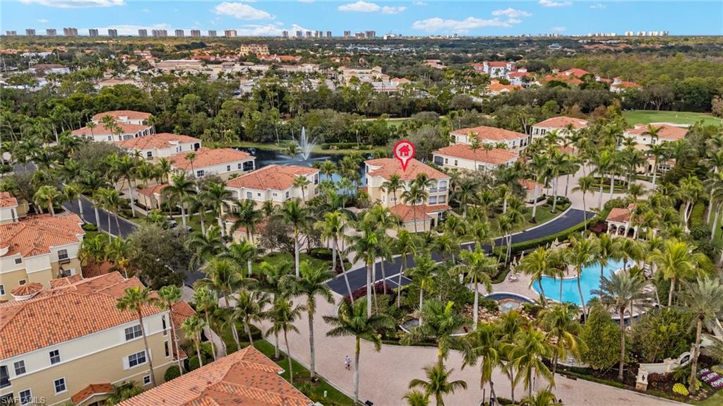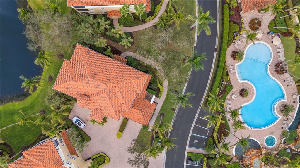 Location really matters, and this residence has it all! Western exposure, lake and fountain views, directly across from the resort style pool, and a short distance to the Tiburon Golf Club and Ritz-Carlton Hotel. Bolero, one of the most coveted and rarely available enclaves within The Ritz-Carlton Naples, Tiburón. This property offers a refined, neutral interior and captivating views adding to the effortless resort-style living.The generous open floor plan flows seamlessly from the main living areas to a spacious lanai, where tranquil lake and fountain views frame the 11th hole of the Greg Norman–designed course at Tiburón Golf Club. The expansive primary suite is filled with natural light from multiple windows and floor-to-ceiling sliders, creating a peaceful retreat. The en-suite bath is thoughtfully designed with dual vanities, a soaking tub, a large walk-in closet, and additional linen storage. The open dining area and well-appointed kitchen complete the main living space, ideal for entertaining or relaxed everyday living. Additional guest bedrooms (den easily a 3rd bedroom) and a full bath provide comfort and privacy for visitors. Living like a single-family home, this residence features direct access from the attached two-car garage, complete with epoxy flooring and a California Closets built-in storage system. Designed for those who value low-maintenance living without sacrificing luxury, Bolero offers a true outdoor oasis lifestyle.