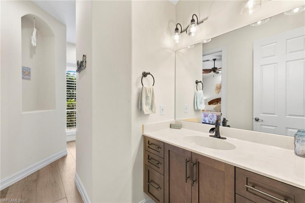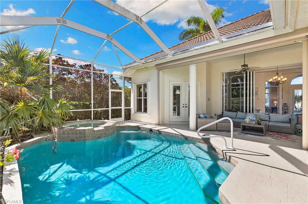 HAVE MULTIPLE OFFERS. ACCEPTING OFFERS UNTIL 2/6 AT 11AM. Welcome home to your Marco Island private oasis! Boasting 3027 SF of a generously open floor plan, this home is entered through double front doors into the elegant living room featuring impressively high tray ceilings which spotlight the gas fireplace flanked by floor-to-ceiling recessed display cases. Approximately fifty linear feet of glass slider walls in the living and family rooms open onto the 619 sq ft screened lanai and pool with remotely controlled hurricane rated storm screens. The kitchen features custom cabinets with huge storage capacity, granite counters, and a new refrigerator and dishwasher. Adjacent is the walkthrough wet bar with a new beverage cooler where you can prepare your morning coffee or evening wine to enjoy sunset. The spacious primary bedroom has two walk-in closets and french doors opening onto the swimming pool, while the primary bath has separate his & hers vanities and spectacularly remodeled walk-through dual showers. The guest bathroom features a lanai exit for easy access from the pool. A 2020 upgrade included new plank tile throughout, enhanced lighting, additional bathroom updates, and replacement of all dual-zoned HVAC components. A 3 car garage includes ample storage. Mature landscaping includes 7 varieties of palm trees with a lushly screened, fenced backyard providing a substantial dog run. The home's ZERO flood history due to its' quality build and elevation along with all opening protection systems provide peace of mind. This timeless home is perfect for entertaining, relaxing and enjoying the island lifestyle.