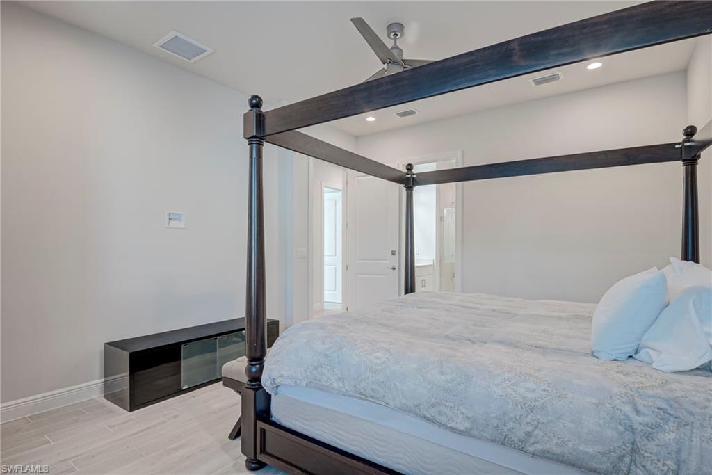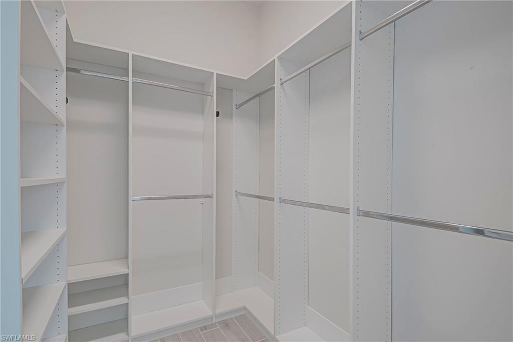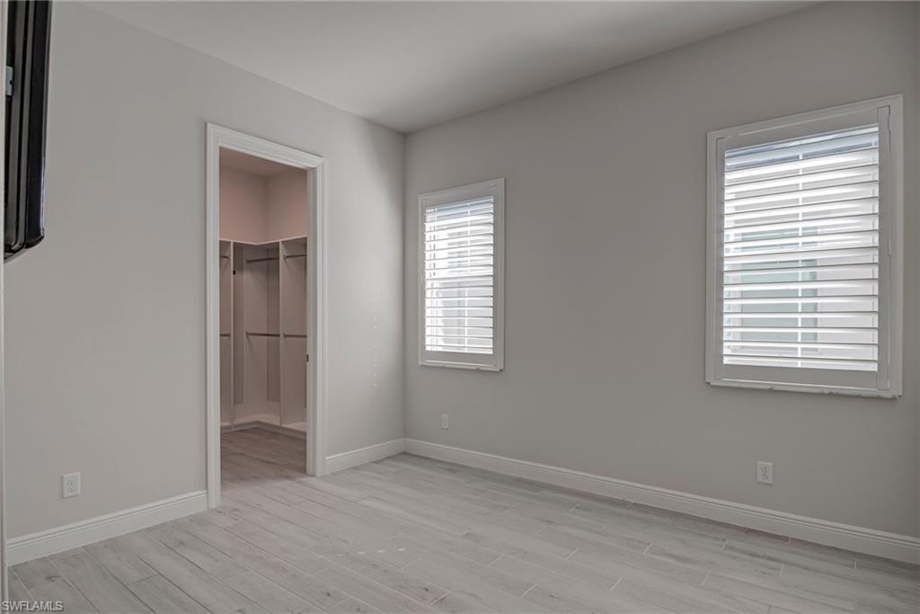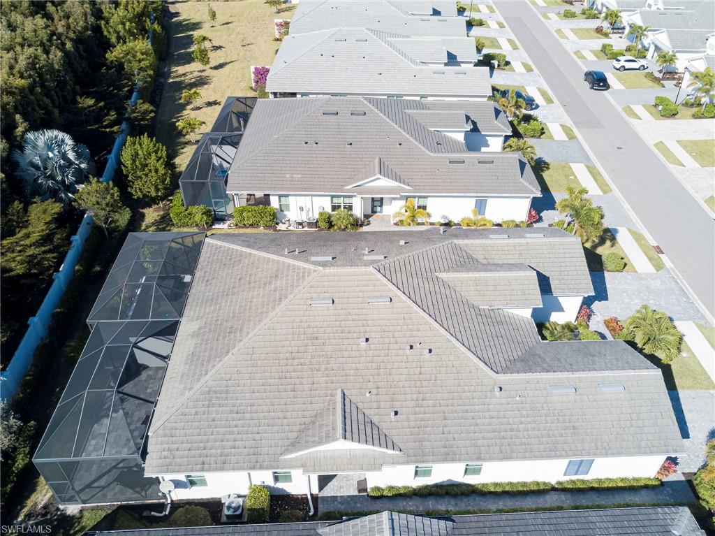Coastal-inspired living meets modern upgrades in this Stillwater Villa at Azure at Hacienda Lakes. Enjoy gas cooking, quartz countertops, tray ceilings, plantation shutters, and an expanded screened paver patio with room for a pool. This beautifully designed villa features optional furnishings and 1,648 sq ft under air with 2 bedrooms, 2 baths, and a spacious 2-car garage. Step inside to 10-foot ceilings, wide wood-look tile flooring throughout, and elegant coffered ceilings in the foyer and great room. The open-concept layout is anchored by a gourmet kitchen with stainless steel appliances, quartz countertops, a glass tile backsplash, a breakfast bar, and a pantry, flowing seamlessly into the dining area and expansive great room, ideal for everyday living and entertaining. The living space is enhanced by recessed lighting, a tray ceiling with crown detail, a ceiling fan, and plantation shutters that bring in beautiful natural light. The owner’s suite offers a spacious walk-in closet with custom built-ins and an en suite bath featuring a dual-sink vanity and an oversized, frameless glass walk-in shower with a built-in bench. A guest bedroom with a walk-in closet and a nearby full bath provides comfort and privacy for visitors. Additional upgrades include a tankless water heater and hurricane impact windows. Outdoor living is equally impressive with a covered lanai, extended brick pavers, and an open-air screened enclosure that creates an expansive paver patio, plus a gas hookup for grilling and a private, lush, treed backdrop. Residents enjoy resort-style amenities, including a gated entrance, a clubhouse with social activities and game rooms, billiards, a café, a library, a heated pool and spa with cabanas, a state-of-the-art fitness center, tennis and pickleball courts, a fire pit, and a BBQ/picnic area. Located just minutes from downtown Naples’ 5th Avenue, Gulf Coast beaches, Marco Island, top-rated shopping, exceptional dining, and medical facilities, this home offers the perfect balance of convenience and luxury.