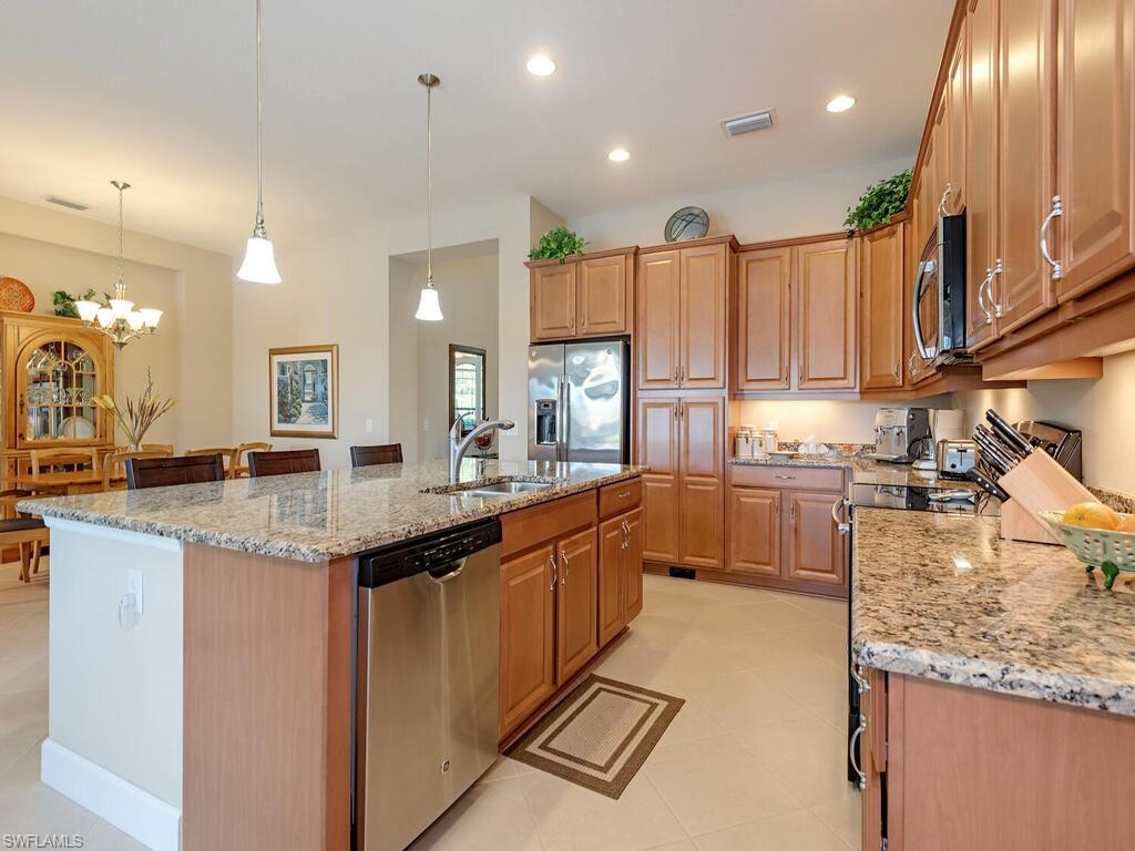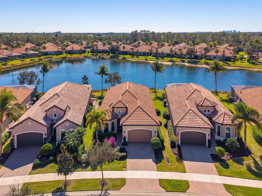 Gorgeous Bonita Isles single family home with wide lake views offered turnkey furnished. The Salerno floor plan is the most popular floor plan in the community with large open Great Room combining kitchen, gathering, and dining areas. Soaring high ceilings throughout with 2 step tray ceiling in the Great Room. Large kitchen area with plenty of cabinet space and large island ideal for serving guests. Other kitchen highlights include stainless steel appliances, cabinet crown molding, and pendant lights. Impact windows and doors throughout. Storm shutters enclosing the lanai. The outdoor space is truly an oasis with large L shaped lanai, custom designed outdoor kitchen with grill, hood, sink, and tile backsplash. The extended screened lanai offers generous unobstructed lake and fountain views. Walking distance to the Bonita Isles amenities which include Clubhouse, resort pool, tennis/pickeball, fitness center, and kid’s play area. Sidewalks on both sides of the street, beautiful lakefront park areas. Reasonable fees and no CDD.