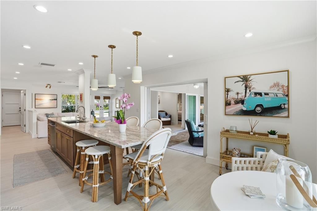 Boater’s paradise with direct canal access to the Gulf of Mexico. This move-in-ready 3-bedroom waterfront home offers an open floor plan and coveted southern exposure, designed for effortless coastal living. Extensively renovated in 2022 with new interior and exterior paint, roof, HVAC, plumbing, electrical, insulation, metal framing and drywall, tile flooring, crown molding, trim, LED lighting, ceiling fans, and updated appliances. In 2024, additional upgrades included soft-close kitchen and bath cabinetry, solid interior doors, PVC baseboards, epoxy garage flooring, water heater, pool heater, and dishwasher. Impact-rated windows and sliding glass doors provide peace of mind, while quartz countertops and thoughtfully designed bathrooms feature backlit mirrors, glass shower enclosures, porcelain tile walls, and dual shower heads. The primary suite includes a custom owner’s closet and bidet. Laundry room and outfitted closets complete the interior. Outdoor living shines with a 1,580 sq ft southern-facing lanai, saltwater pool, outdoor shower, underground irrigation, and a 2022-built composite dock with a covered 10,000 lb boat lift. Ideally located with easy access to RSW Airport, minutes to Barefoot Beach and the iconic Doc’s Beach House, and perfectly positioned to enjoy the best of both Bonita Springs and Naples. A true waterfront retreat built for boating, comfort, and coastal style.