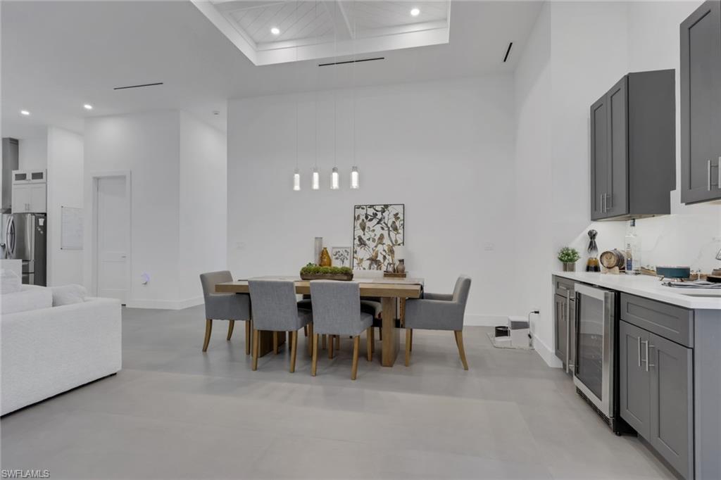 A golfers dream come true! Experience refined modern Florida living in this beautifully crafted 2024 construction estate in the heart of Estero. This stunning 4 bedroom, 3.5 bathroom single story residence offers 2,615 sqft. of elegant living space on a spacious .21 acre lot, thoughtfully designed for comfort, style, and seamless indoor outdoor entertaining. The open concept great room showcases soaring volume ceilings, custom built-in cabinetry, and French doors that fill the home with natural light and frame serene wooded views. The gourmet kitchen is a chef's dream with a large center island, walk-in pantry, wall oven, wine cooler, electric cooktop, and designer finishes. The primary suite offers a private retreat with dual vanities, a luxurious soaking tub, multiple shower heads, and a generous walk-in closet. Premium tile flooring flows throughout, complemented by a full laundry room, wet bar, and volume ceilings in every living space. Step outside to your personal resort-style oasis featuring a heated pool and spa, expansive screened lanai, built-in grill, and full outdoor kitchen, all set against a lush wooded backdrop. Built to last with a metal roof, concrete block construction, impact-resistant windows and doors, and a central irrigation system. The oversized 2 car garage provides ample storage or outdoor toys . Located in Estero Springs, this non-HOA property offers complete freedom and flexibility with no restrictions. As an exclusive bonus, the new owner has been pre-approved for optional membership at the prestigious Pelican Sound Golf and River Club, located directly across the street. This private club features 27 holes of Audubon-certified championship golf, a recently renovated 27,000 sq. ft. clubhouse, 8 tennis courts, 14 pickleball courts, a river club complex with boat shuttle to Lovers Key State Park, multiple resort-style pools and spas, diverse dining venues, a professionally staffed fitness center, boat launch and storage, kayak and canoe access, a dog park, and year-round social programming. Enjoy world-class amenities by simply paying annual club dues with no HOA obligations on the property. Minutes from Coconut Point, Miromar Outlets, FGCU, Hertz Arena, and quick access to US-41 and I-75. This move-in-ready home delivers the Southwest Florida lifestyle at its absolute finest.