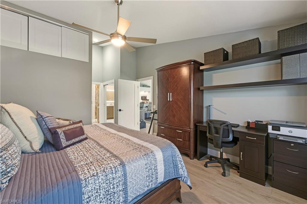 Clubside Reserve at The Vineyards – Second-Floor End-Unit Coach Home. Experience refined living in this exceptional coach home, complete with a two-car garage. This thoughtfully designed and completely refashioned residence offers three bedrooms plus a den, three full baths, open layout enhanced by numerous custom upgrades. Positioned uniquely, the home enjoys added privacy and tranquil surroundings with lake views. The enclosed lanai with triple sliding glass doors creates an expanded living area with additional interior square footage. The renovated kitchen and primary bath showcase quality finishes, complemented by crown molding and custom window treatments, adding timeless elegance and architectural detail. Thoughtful design elements throughout ideal for both entertaining and everyday comfort. Residents of Clubside Reserve enjoy access to a clubhouse featuring and swimming pool & spa, within a welcoming and vibrant community. This is a rare opportunity to own a truly distinctive residence in one of The Vineyards’ most desirable neighborhoods. A must-see property.