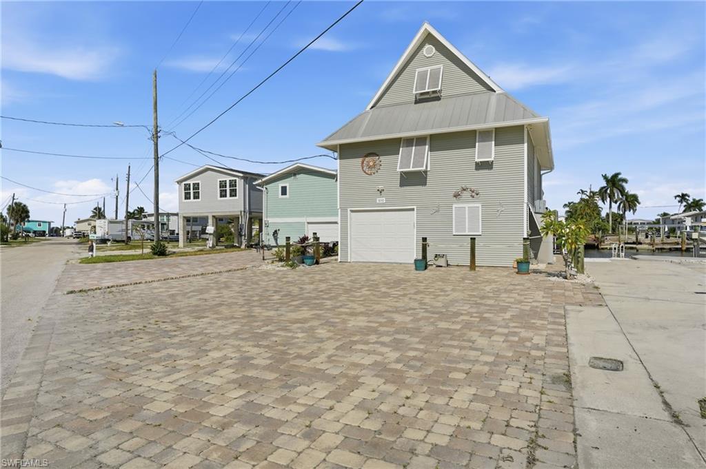 RARELY AVAILABLE! NO HOA FEES & NO RENTAL RESTRICTIONS. Just over the bridge from Fort Myers Beach, this elevated canal-front home on San Carlos Island offers direct Gulf access and an exceptional waterfront lifestyle. The main living level features a bright, open floor plan with plantation shutters and direct access to a spacious deck overlooking the private dock. The kitchen includes solid wood cabinetry with soft-close drawers, granite countertops, stainless steel appliances, and an island for added prep and seating space. The primary suite offers an updated bathroom with quartz countertops and a large walk-in shower. An additional upstairs bedroom includes a full bath and ample closet space. The lower level (approx. 800 sq ft) provides flexible living options with a garage, sunroom, half bath with shower, and a bonus room ideal for guests, office, or studio use. Paver driveway and garage with retractable screen allow for added airflow and functionality. Dock features include water and electric service, a 10,000 lb boat lift, remote-controlled jet ski lift, and floating kayak dock. Conveniently located near popular island dining, entertainment, and minutes from Margaritaville Resort. A rare waterfront opportunity offering flexibility, boating access, and island living with no HOA or rental restrictions.