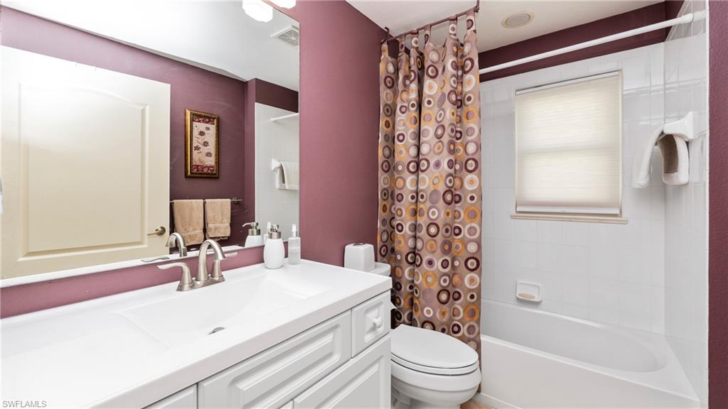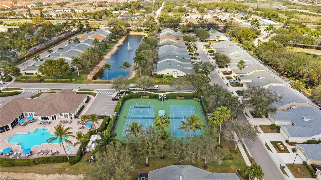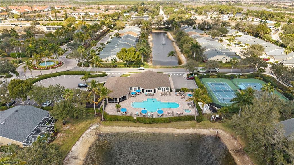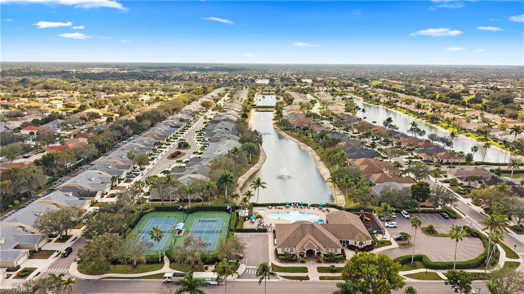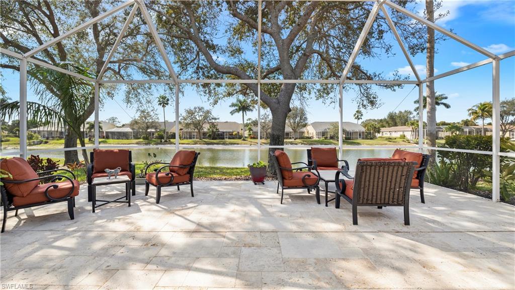 Welcome to this lakefront villa situated on a quiet cul-de-sac in the highly desirable community of Ibis Cove in North Naples. This light and bright home features three bedrooms and two bathrooms, including a versatile third bedroom currently styled with custom built-in bookshelves that can easily be transitioned back into a traditional closet. Significant high-ticket upgrades provide immediate peace of mind, including a new roof installed in 2022 and full hurricane impact windows and doors added in 2021. The interior has been refreshed with a crisp, neutral paint palette that perfectly complements the natural light pouring in from the windows. The heart of the home extends outdoors to an expansive, extended lanai featuring elegant French-pattern travertine tile, offering the perfect vantage point for serene lake views. For added protection and convenience, the lanai is equipped with a motorized roll-down shutter installed in 2015. Additional features include 2016 air conditioning system and a pristine two-car garage finished with a durable epoxy floor. Ibis Cove residents enjoy a low-maintenance lifestyle with access to a clubhouse, resort-style pool, tennis courts, and fitness center, all while being minutes away from North Naples’ premier shopping, grocery store, dining, beaches and more.