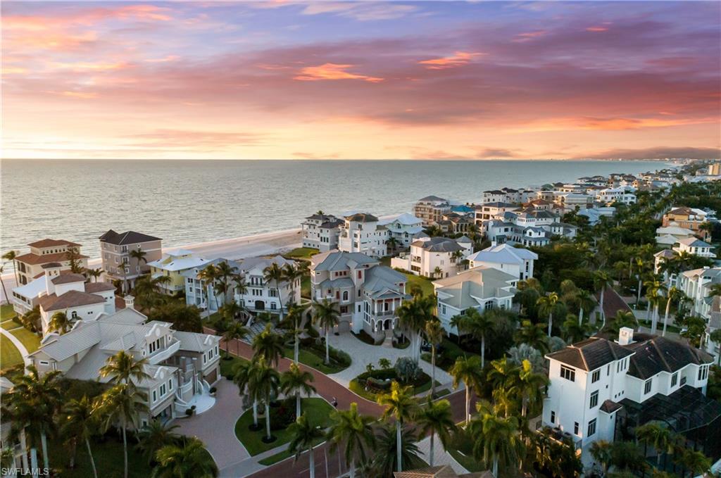 Stunning Beachfront home located in Collier County’s premier “Barefoot Beach” community! This remarkable residence is situated on a double homesite offering unparalleled views of the pristine sands and turquoise waters of the Gulf, with private beach access just steps from your doorstep. Spanning an impressive 9,399 sq ft under air across five levels of luxurious living space, this exceptional property features a large elevator with dual entries servicing every floor, 5 bedrooms + den, 5 full baths, 2 half baths, garage space for 5 vehicles, versatile flex space, and two new HVAC systems. Built like a fortress with the finest building materials, this home includes concrete block construction, metal roof, hurricane impact windows and doors, electric hurricane shutters, and a new 48KW Generac generator. The bedroom level offers exceptional comfort and privacy, featuring most of the home’s bedrooms including the luxurious primary suite. The primary retreat serves as its own private sanctuary, complete with direct access to a private balcony showcasing spectacular Gulf sunsets and a spa-like bath featuring dual vanities, a separate jetted tub, and a spacious shower enclosure with rainfall showerhead. The main living level is designed for both elegant living and effortless entertaining, featuring a gourmet chef’s kitchen with beautiful tray ceilings, crisp white cabinetry, dual sinks, high-end appliances including a gas range, a walk-in refrigerator with wine storage, and an oversized island with ample seating. The adjacent dining and family rooms open seamlessly to the open-air lanai, where rich cypress wood ceilings, a fully equipped summer kitchen and fireplace create the perfect setting to relax while enjoying sweeping Gulf views. At the top floor of the residence, you’ll find the ultimate recreation and entertaining space, complete with a kitchenette, theatre room, office, and expansive open-air balcony offering even more breathtaking Gulf vistas—an ideal setting for hosting guests or enjoying peaceful evenings overlooking the water. The Beach Gardens community features lush tropical landscaping and a beautiful resort-style pool. Optional membership to the exclusive Club at Barefoot Beach offers access to tennis, two restaurants, and beachside food and beverage service. Ideally located near fine dining, RSW Airport, Mercato, Waterside Shops, and Naples’ renowned Fifth Avenue South, this extraordinary property represents the pinnacle of Barefoot Beach living.