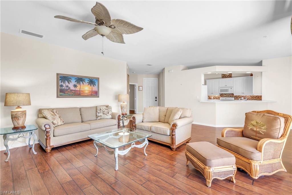 This elevated first-floor condo blends the convenience of ground-level living with the peace of mind that comes from being raised safely above the flood zone. Sunlight pours through expansive windows, illuminating an open, airy interior and framing breathtaking views of the Pelican Marsh golf course and the shimmering lake beyond. Every room feels connected to the outdoors, creating a serene, resort-style atmosphere. An attached two-car garage adds rare convenience and security, while the location couldn’t be more ideal—just steps from the community’s geothermal pool and spa. Whether you’re enjoying morning coffee with panoramic fairway views or unwinding in the naturally heated waters next door, this home offers a lifestyle defined by comfort, beauty, and effortless living.