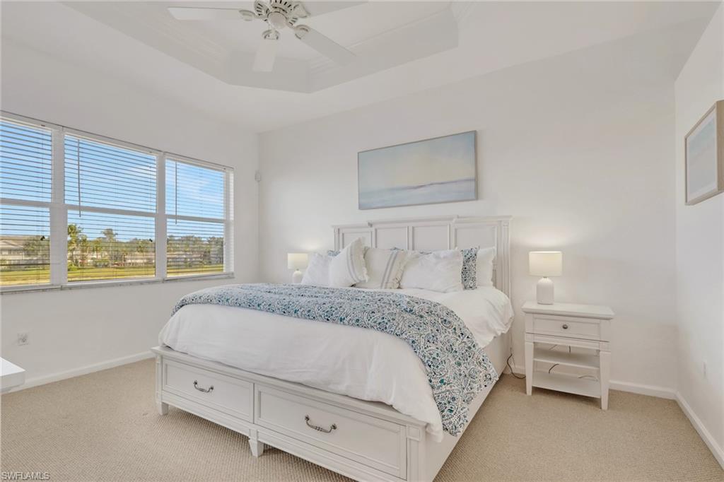 Enjoy breathtaking expansive lake and sunset views from this beautifully designed coach home in Paloma at Palmira Golf & Country Club. With amazing views from this elevated unit, abundant natural light, and a bright open-concept layout, this residence delivers the ideal Southwest Florida lifestyle for full-time living, seasonal enjoyment, or investment use. This spacious home offers 2,297 square feet of living space and features 3 bedrooms plus a den, which functions as a true 4-bedroom layout, along with 2.5 baths. The newly remodeled kitchen with brand new appliances is a standout, showcasing crisp white cabinetry, modern finishes, and an open design that flows seamlessly into the main living areas—perfect for entertaining and everyday living. The home includes a brand-new A/C unit installed in 2024, as well as electric hurricane shutters for comfort and peace of mind. Step onto the screened lanai and take in the incredible panoramic lake views and unforgettable sunsets, creating a serene indoor-outdoor living experience. Additional highlights include a two-car garage, an additional deeded parking space, and generous space for hosting family and guests. Palmira is one of the area’s most sought-after resort communities, offering an exceptional lifestyle with a resort-style pool, fully staffed state-of-the-art fitness center, community center, library, business center, concierge services, tennis courts with an on-site professional, bocce, putting green, and a 27-hole championship golf course complete with a pro shop, grill room, and elegant country club. Ideally located just minutes from Barefoot and Bonita Beach, consistently ranked among the top beaches in the country, and conveniently close to RSW International Airport, as well as premier shopping and dining throughout Southwest Florida. This lakefront carriage home offers stunning views, thoughtful upgrades, and resort-style amenities—an exceptional opportunity in the heart of Bonita Springs.