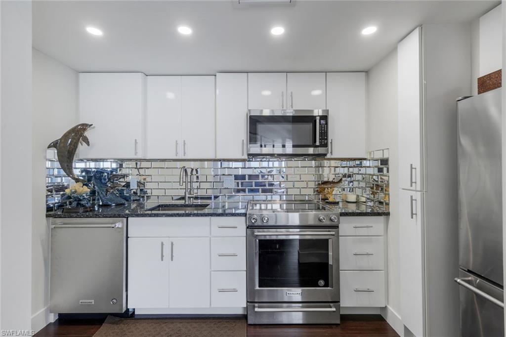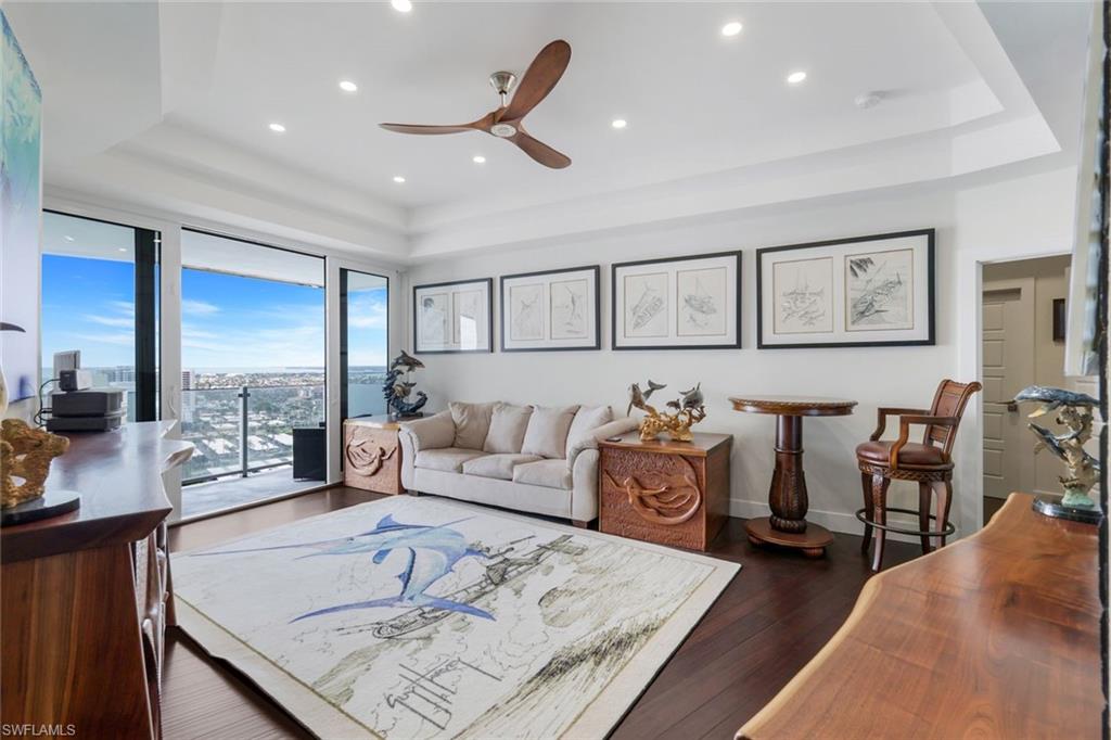 Experience exquisite living in this fully remodeled penthouse unit where breathtaking water views stretch all the way to Naples. Revel in the contemporary design, highlighted by soaring 10-foot ceilings and impact-resistant glass windows and sliders that invite natural light to dance throughout the space. The gourmet kitchen is a chef's dream, featuring top-of-the-line Kitchenaid appliances, elegant quartz countertops, and rich hardwood floors that flow seamlessly through the home. The thoughtfully designed split floor plan ensures that both bedrooms enjoy unparalleled vistas, making every morning a picturesque awakening. Retreat to the master bath, where a spacious walk-in shower and dual sinks create a spa-like atmosphere, complemented by custom closets that cater to all your storage needs. Every corner of this Penthouse is adorned with high-quality furnishings that elevate the living experience. Step onto the balcony to embrace the stunning panorama of the Gulf, where vibrant sunsets paint the sky and glorious morning sunrises over Marco Island provide a daily spectacle. As night falls, the twinkling lights of the island create a magical ambiance, making this penthouse a true sanctuary of luxury and beauty.