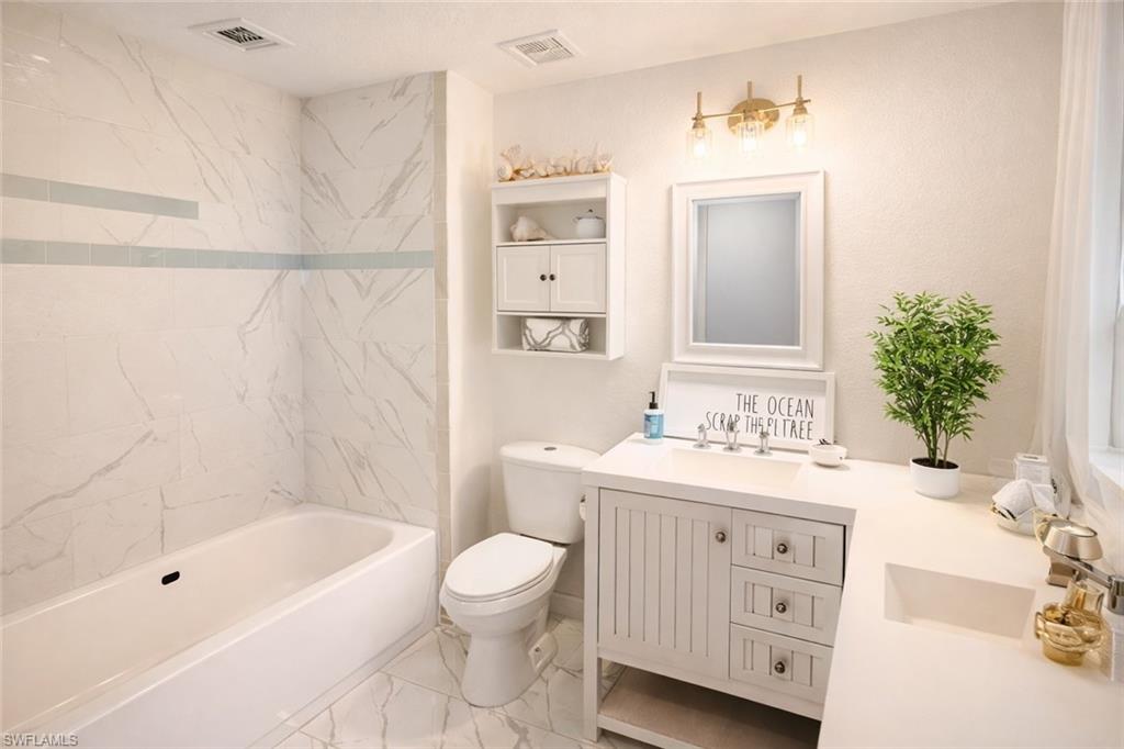 Welcome to St. Croix at Pelican Marsh, an intimate gated community ideally located in North Naples just minutes from the beach, Mercato, and premier shopping and dining, with convenient access to the airport and downtown Fifth Avenue South. This amenity-rich community offers a true resort-style lifestyle, featuring a pool and spa, 24-hour fitness center, tennis and pickleball courts, clubhouse, business center, BBQ area, playground, dog park, valet trash service five days a week, and beautifully maintained grounds with a lake for fishing. Everything you need is right within the community. Inside, this thoughtfully renovated second-floor condo blends modern finishes with relaxed coastal style. The open-concept layout seamlessly connects the living, dining, and kitchen areas, creating a bright and inviting space for both everyday living and entertaining. A spacious screened-in balcony extends the living area and provides the perfect spot to enjoy Florida’s sunshine. The kitchen features granite countertops, white shaker cabinetry, and stainless steel appliances. The primary suite offers a peaceful retreat with abundant natural light, a walk-in closet, and an ensuite bath with a large walk-in shower. A second bedroom and full bath provide flexibility for guests, a home office, or additional living space. Additional highlights include tile flooring throughout, a full laundry room with side-by-side washer and dryer, and excellent natural light throughout the unit. Recent 2026 improvements include fresh paint throughout the entire unit, including ceilings, interior doors, and closets, along with brand-new light fixtures, ceiling fans, and window treatments. The condo is ideally situated on the second floor, offering added protection from the elements. The assigned parking space is conveniently located directly in front of the building, with ample guest parking available. Seasonal rentals, annual rentals, and pets are allowed, making this an ideal option for a primary residence, vacation home, or investment opportunity in one of North Naples’ most desirable communities.
