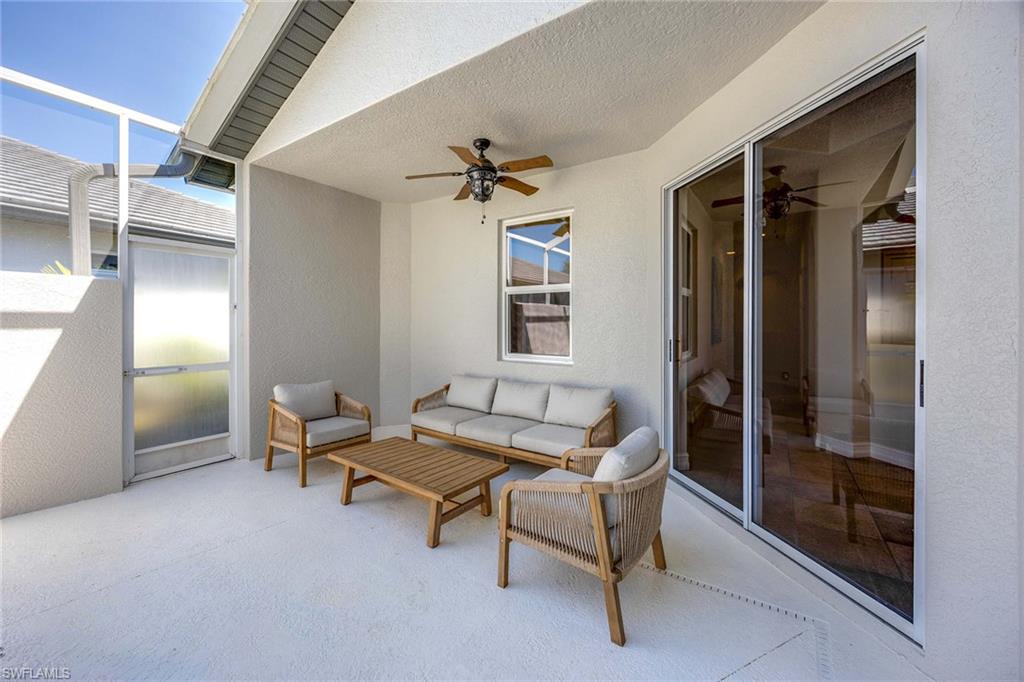 New roof and new impact windows are just the beginning. This light-filled coastal-inspired villa delivers a rare blend of privacy, volume, and resort living within the gated community of Tarpon Bay in a wonderful location. Designed around an open courtyard-style layout, the home welcomes you with soaring ceilings, towering doors, and walls of glass that draw in natural light and create an airy, uplifting atmosphere throughout. Disappearing sliders extend the living space seamlessly to a covered lanai featuring a private eight-person in-ground pool and spa, offering the feel of your secluded retreat for quiet relaxation and effortless entertaining. From the main suite, enjoy peaceful southwest-facing long lake and fountain views that bring a daily sense of calm and connection to the outdoors. Thoughtfully upgraded and meticulously maintained, the interior showcases tray ceilings, a high-end kitchen, tankless hot water system, integrated sound, designer fans, new roof, and impact glass for comfort and peace of mind. Residents of Tarpon Bay enjoy access to the Castaway Club, a resort-style amenity center with a clubhouse, fitness and yoga studios, Har-Tru tennis courts, lakefront infinity pool and hot tub, kayak launch and storage, fishing pier and grilling areas, all ideally just minutes from Naples beaches, dining and shopping, making this home an exceptional full-time residence or luxurious seasonal escape.