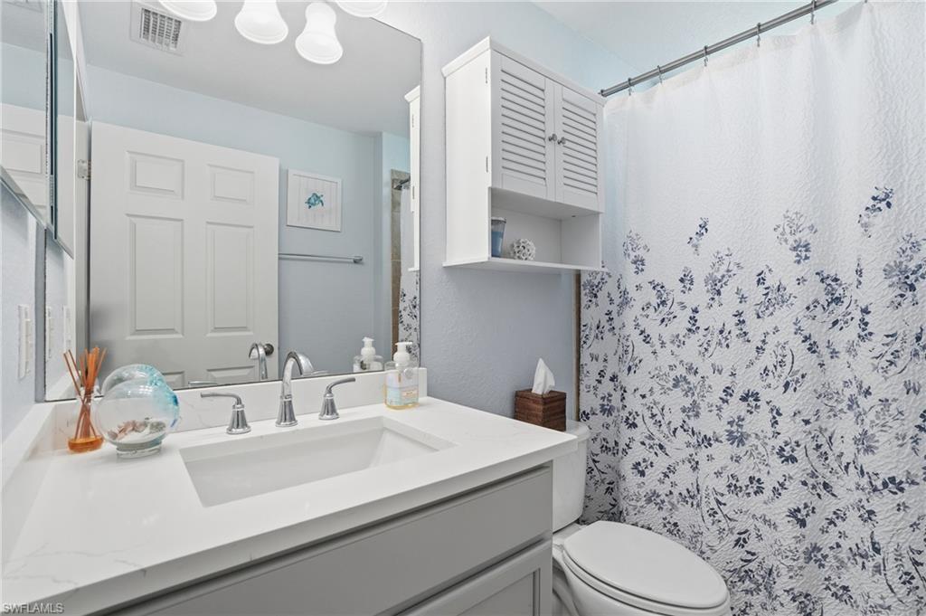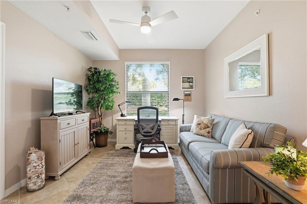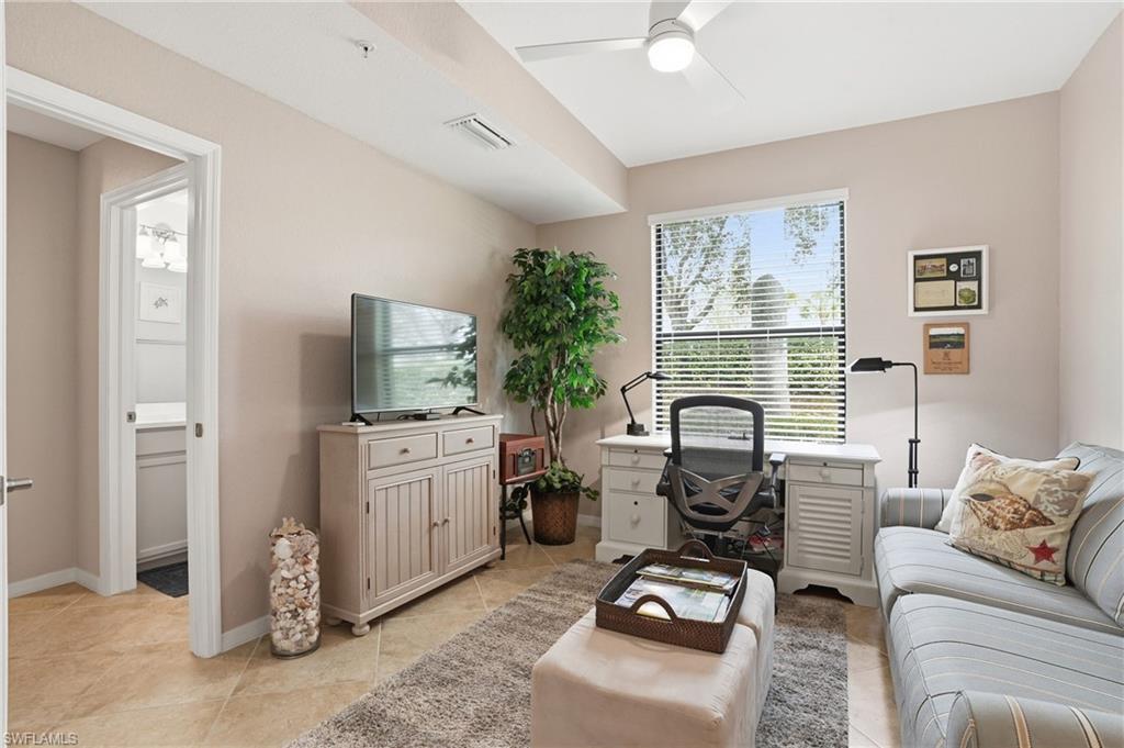 GOLF MEMBERSHIP INCLUDED IN THIS Turnkey Updated 2+Den End Unit with Golf & Lake Views! Enjoy sweeping golf and lake views from this first-floor Arabella end unit in Treviso Bay. Offering 2 bedrooms + den, 2 baths, and 1,661 sq. ft., this beautifully updated residence overlooks the 11th tee and includes a coveted bundled TPC golf membership. Designed for effortless Florida living, the open great room floor plan is filled with natural light from expansive sliders that lead to a private screened lanai with panoramic fairway views. Neutral tile flooring, elegant finishes, and tasteful turnkey furnishings create a refined, move-in-ready retreat. The den is currently configured as a third bedroom, providing added flexibility. The updated kitchen features quartz countertops, stainless appliances, abundant cabinetry, and a breakfast bar overlooking the course. The primary suite offers serene views, generous closets, and an updated en-suite bath, while the guest bedroom and updated bath provide comfort and privacy. A detached one-car garage and both front and rear lanais enhance convenience and outdoor living. As a TPC member, enjoy access to the TPC network of courses nationwide, along with Treviso Bay’s resort-style amenities including clubhouse, dining, fitness center, tennis, pickleball, and pool — all just minutes from downtown Naples and Gulf beaches. A rare opportunity to own a golf-included, end-unit residence with exceptional views.