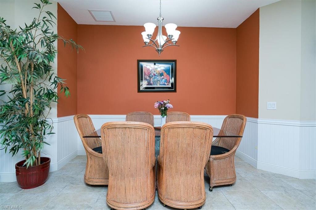 Come see Villa Palmeras and see this immaculate home with two bedrooms plus den and two baths with two car garage (door will be painted shortly). Tile flooring and new LVP flooring in den and bedrooms(23). Kitchen with white cabinets, new Moen faucet, pantry, new microwave(25) and Refrigerator with French doors (24). New granite counters and center island squared off with additional cabinet and drawer and sitting area (24). New thermostat(25).New picture window screening on lanai. NO more gutter cleaning as a Gutter Shield System has been installed (26).Storm Smart electric screen for hurricane protection 26). The guest bedroom has a Chest Murphy Bed which is queen size with 6” memory foam so you are ready for your first guests. Gas AOSmith water heater. NOW you know about some of the wonderful things about this home. Its great room is wonderful for entertaining . Don’t take too long as this won’t last long. Villa Palmeras is calling your name. Make your appointment for 21547. Swimming pool and spa, walking trail and grilling area to meet your nice neighbors. Pet friendly. Gated community. So convenient to RSW, Miromar and dining galore.