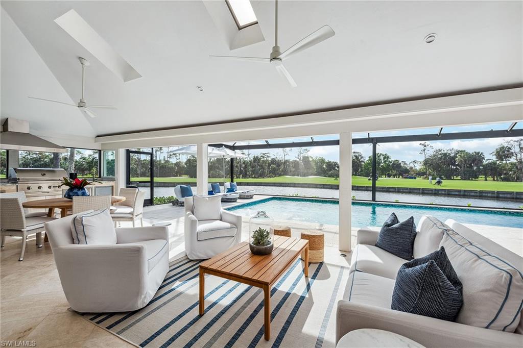Full golf membership available! This thoughtfully re-imagined Eagle Creek estate home presents a refined approach to golf and country club living, positioned to capture sweeping water and fairway views across the club’s celebrated 18th hole. Offered with luxury furnishings, this beautifully remodeled residence features 3 bedrooms plus a den and 2.5 baths, with an open layout defined by soaring ceilings and abundant natural light. Expansive glass frames nightly sunsets over the course, best enjoyed from the generous lanai designed for year-round outdoor living. Interior appointments include marble flooring, premium lighting, an integrated Sonos audio system and a chef’s kitchen equipped with Wolf and Sub-Zero appliances. Recent improvements, such as a newer roof, impact-resistant windows, and electronic storm screens, add modern efficiency and peace of mind. Outdoors, the lanai serves as a private retreat with a full summer kitchen, marble pool deck, oversized pool with water features, and a panoramic screen enclosure that preserves uninterrupted views. Eagle Creek Golf and Country Club is an intimate, gated enclave set between Naples and Marco Island, offering an established lifestyle centered on championship golf, dining, tennis, fitness and social engagement. This residence offers a rare opportunity to enjoy privacy, scenery and club living within one of Naples’ most understated communities.