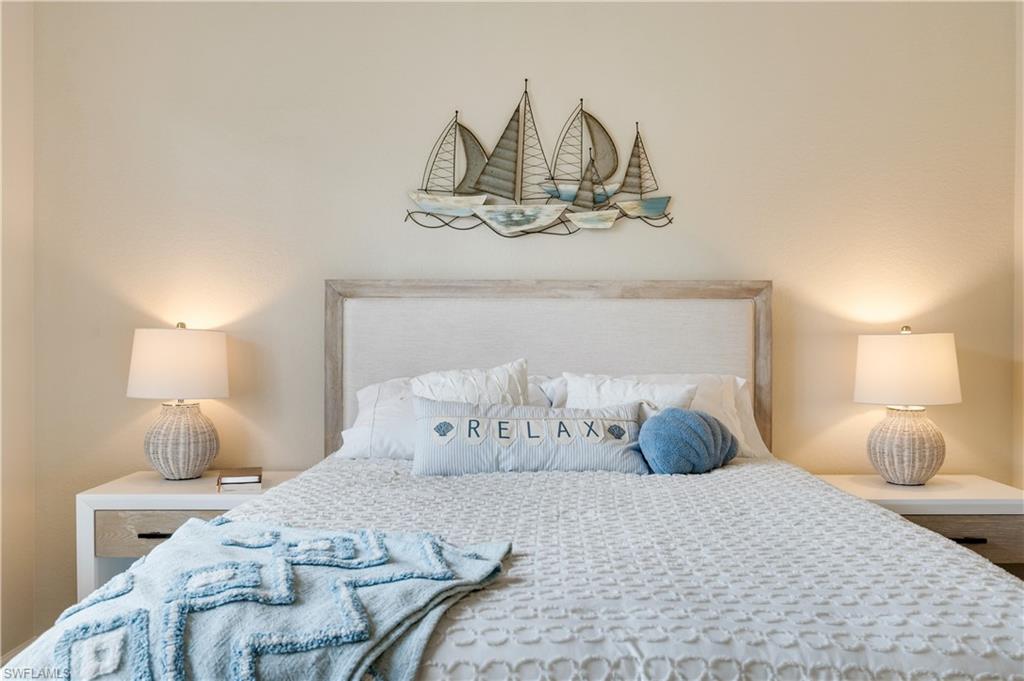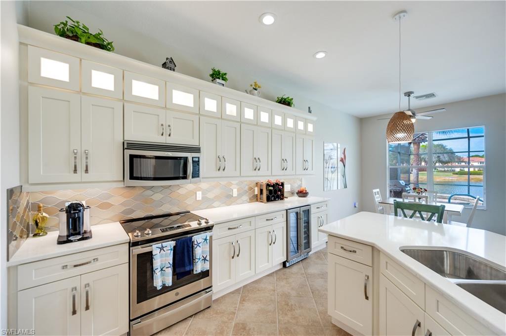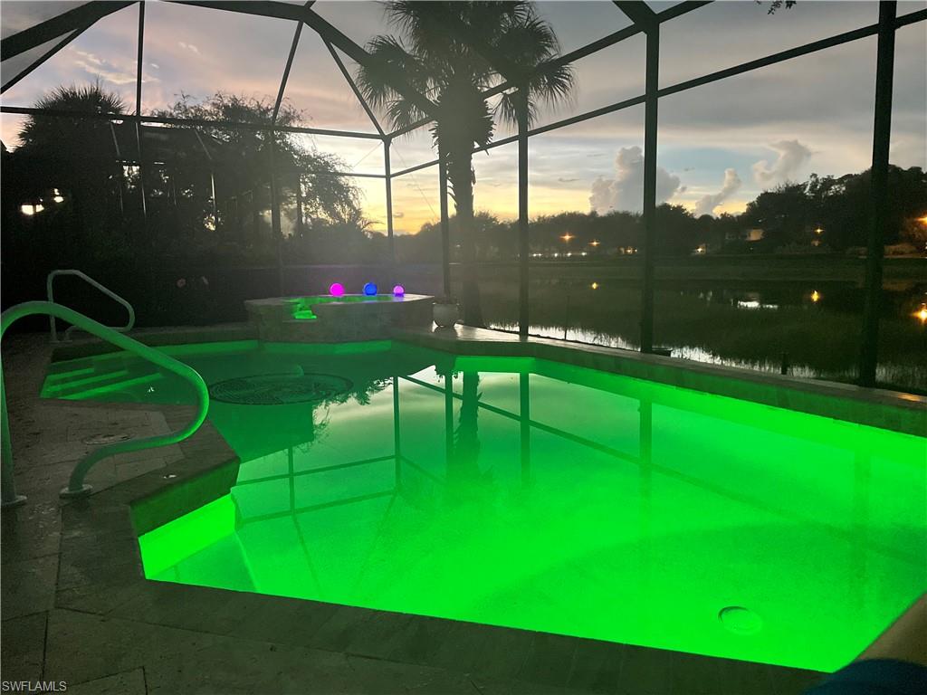 Sweeping long Lake Views from your expansive Saltwater Pool, Spa & Cascading Waterfall home boasting the most secluded vantage point in all of highly sought after Hawthorne of Bonita Springs. No homes across or behind you! The NEW TILE ROOF, Aqua-link Pool System w/new controls and X500 Flood Zone provide "peace of mind" to fully enjoy your quiet tropical oasis. With 2168 sq ft of living space and volume ceilings, this Centex built Winthrop floor plan offers 3 br+Den, 3 Full Baths, updated open kitchen featuring white quartz countertops, stainless steel appliances and stylish backsplash plus pendant lighting. Each bedroom has its own full bath and the 14'X10' Den can easily be converted to a 4th bedroom by adding a closet. The master bedroom provides his and hers walk-in closets, a tray ceiling and the french door opens to welcome cool lanai breezes. Master Bath boasts his & hers vanities/sinks, a specious open shower and luxurious soaking tub. Plenty of outdoor area to entertain in your spacious lanai, enhanced by a travertine deck and LED pool lights. Enjoy the abundant wildlife teeming with osprey and herons and fish in your backyard for bluegill, bass & crappie. Have it all with this gated, 24 hour security, community with resort amenities including 2 Pools, 2 Spas, Pickleball, Tennis, 2 Fitness rooms, Clubhouse and community room. At only $1,534 per quarter, HOA fees are BY FAR the best value around and include cable/wifi, irrigation water and lawn/land maintenance. The greenbelt walkway is located across from the home giving you easy access to the very social community with activities like Book Club, Cards/Games, Tennis, Bike groups and more. Conveniently located near downtown Bonita's historic Shangri-la Hotel & Spa, the uber popular Sugar Shack and Riverside Park. Only 6 miles to Bonita Beach and 16 Miles RSW International Airport--paradise awaits!