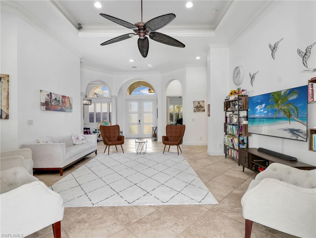Lakefront home in desirable Indigo Lakes! This beautifully updated 4BR+den, 4BA single-story residence offers nearly 3,000 sq ft of elegant living space and exceptional move-in readiness, featuring a freshly painted exterior and a new roof (2026). The open floor plan showcases volume ceilings, crown molding, and abundant natural light. The kitchen features quartz countertops and flows seamlessly into the main living areas—ideal for entertaining. Enjoy tranquil lake views from the screened lanai with heated pool, spa, and outdoor kitchen. The spacious owner’s suite offers lanai access, walk-in closets, and a private en-suite bath with a quartz vanity. Additional highlights include a 3-car garage and an oversized .33 -acre lot. Located in a gated community with low HOA fees and amenities including a clubhouse, fitness center, pool, and tennis courts—all in a prime North Naples location near top-rated schools, shopping, dining, and beaches.
