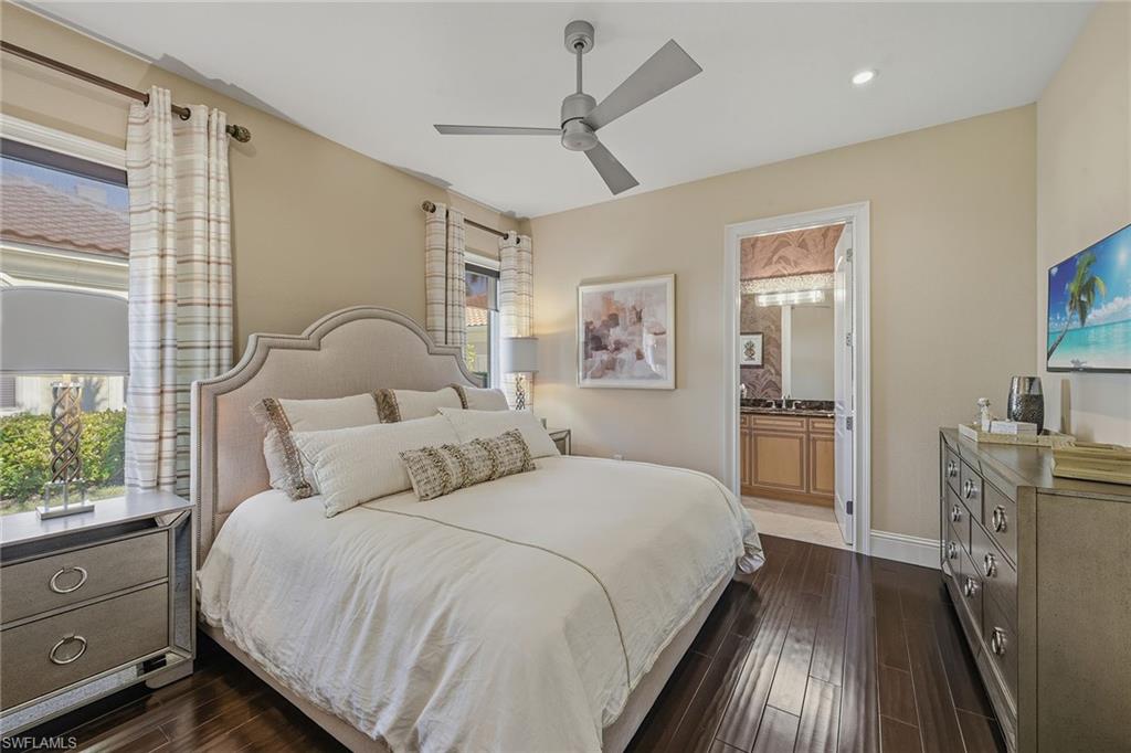 Perfectly positioned on a .60-acre homesite with breathtaking sunsets overlooking the Rookery Golf Course, this impeccably maintained, beautifully furnished and decorated high-quality residence is located within the exclusive double-gated Isla del Sol neighborhood of Fiddler’s Creek and checks ALL of the boxes. Set along the golf course and water with impressive views, this refined luxury home was built by Stock and offers seamless indoor-outdoor living, with expansive glass sliders framing the shimmering pool and serene backdrop. The thoughtfully designed floor plan includes four bedrooms plus a den, four-and-a-half baths, and a spacious three-car garage. Curb appeal features large paver driveway, lush landscaping, and a grand double-door entry, while impact windows and electric screens on the lanai provide peace of mind and year-round enjoyment. Inside, soaring tray ceilings, crown molding and LED recessed lighting create an elegant ambiance. A whole-house generator, Control4 system and central vacuum add convenience. The chef’s kitchen features light cabinetry with glass inserts, under- and in-cabinet lighting, granite counters, a center island, walk-in pantry, and a bar with glass pendant lighting. Premium appliances include a Wolf natural gas cooktop and double oven, microwave, Miele dishwasher, refrigerator, Kinetico water filtration, and Sub-Zero wine cooler. The living space captures stunning views and opens to the lanai through expansive sliders, including zero-corner sliders, and features a gas fireplace and wet bar. The den offers engineered hardwood and a built-in desk. The primary suite is a private retreat with double-door entry, pool views, French doors to the lanai, engineered hardwood, walk-in closet, and an ensuite bath with dual vanities, soaking tub, and walk-in shower. Guest suites are inviting, including one with engineered plank floors and walk-in closet, while additional bedrooms feature well-appointed baths, one with direct lanai access. Outdoor living shines with an oversized screened lanai, heated saltwater pool and spa, speakers, gas fireplace seating area, and a fully equipped outdoor kitchen with sink, grill, and bar seating. Western exposure showcases sunsets and plentiful sunshine on the pool. The garage features epoxy floors, built-in cabinetry, refrigerator, and a 75-gallon gas water heater. Fully paid CDD bond. Residents enjoy a spectacular Clubhouse with fine and casual dining, resort-style pools, spa services, fitness center, tennis courts, 10 pickleball courts, bocce, and a vibrant social calendar, with optional memberships to The Creek Course and Tarpon Club for golf, beach access, and marina privileges. Miles of sidewalks wind throughout the community, offering a scenic setting for walking, biking, and running. Ideally located between Naples and Marco Island, this home places you moments from beaches, dining, shopping, executive airport, golf, boating, and outdoor recreation - an exceptional opportunity.