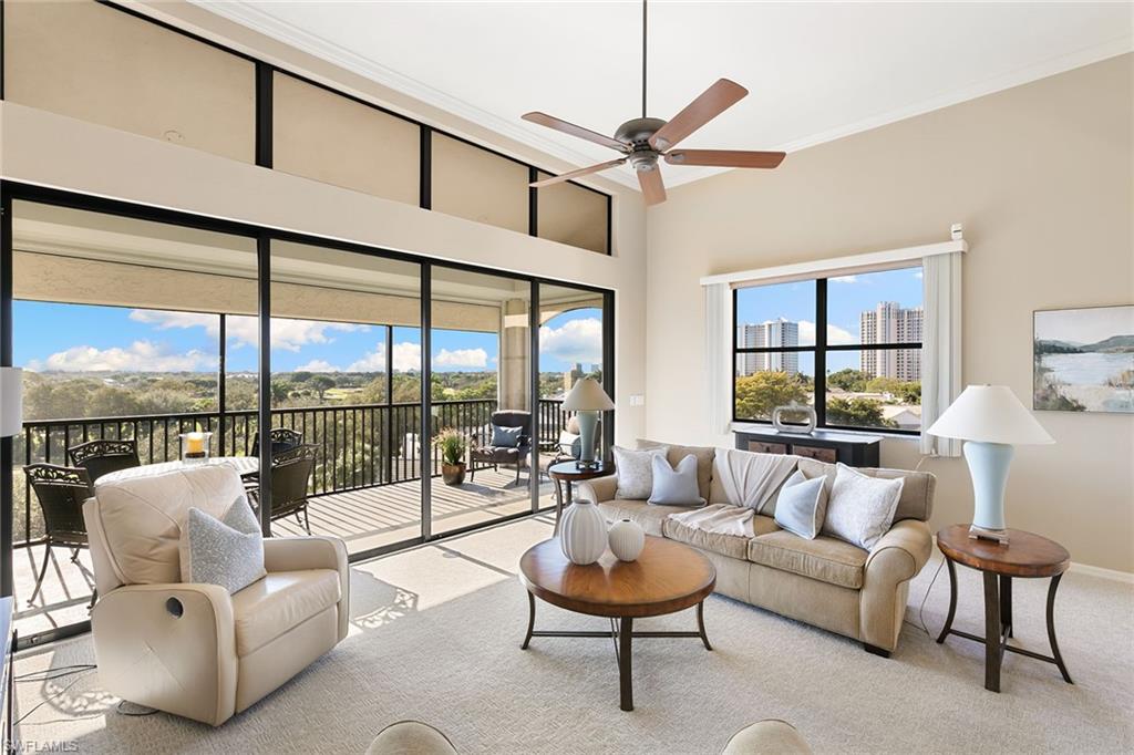Top-floor light, Gulf breeze and that rare feeling of volume. Welcome to Calais in Pelican Bay, where this furnished residence lives larger than its footprint thanks to soaring 12-foot ceilings and an open, airy layout that invites easy coastal living. The lanai offers a beautiful golf and peek-a-boo Gulf view backdrop, the kind of everyday scene that never gets old, whether you're sipping morning coffee or winding down after the beach. Offered furnished for a seamless move-in. Calais is small-pet friendly and offers a clubhouse with fitness room, full kitchen, barbecue grills, pool and spa, along with under-building parking for convenience and peace of mind. Enjoy world-class amenities, including the private beach experience with tram access, beach attendants, dining options and Pelican Bay Community Center featuring tennis, pickleball, fitness and more. All this is close to Waterside Shops, Artis-Naples and best of Naples dining. An ideal top-floor choice for buyers who want ceiling height, a golf and peek-a-boo Gulf view, and wellness lifestyle of Pelican Bay.