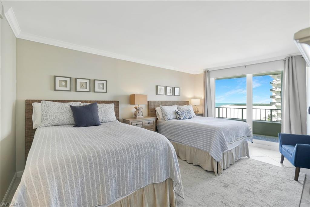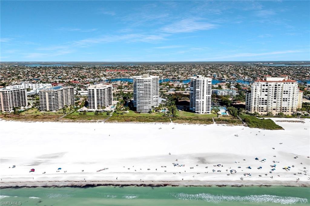 Experience resort style coastal living at this beachfront high rise on a highly coveted location with stunning views at the Summit House. This exceptional residence offers wow-factor sights and soothing sounds of the shore below. A long exterior balcony offers breathtaking views, especially from this ideal height and vantage point. Marco Island stands apart from nearby Naples for its outstanding value and for its renown sugar white sand beaches. Open-concept layout seamlessly connects the living, dining, and kitchen areas. Prime location on the island as it stands several buildings away from the iconic J.W. Marriott Resort and Spa. Buyers shopping for beachfront property in Southwest Florida will undoubtedly take notice of this amazing value, these building amenities, views, location on beach, and with its close access to shops, dining, and an easy drive to YMCA pickleball courts. Spacious open floor plan of 1,733 sq foot under air with 2 bedrooms and 2 baths. Additional spacious outdoor patio that runs from the living room all the way past outside both bedrooms. The sizable master suite has gorgeous views, large finished walk-in closet and a second closet, dual vanity bathroom with updated large shower. Secondary bedroom also enjoys sensational beach views, full bathroom and closet. All tile flooring, granite kitchen, stainless steel appliances, in-unit laundry, spacious interior walk-in closet, also used as owner’s closet. This private, secure gated building affords direct access to the beach and pool and spa looking out to the beach. The Summit House offers exceptional amenities, including an impressive lobby, spacious community gathering room, billiards table, sauna, fitness room, garage parking for owners and guests, grill, convenient beach chair rack spaces just inside the gate area before exiting out to locked entry to beach. Ease of living with 3 elevators access to all levels.