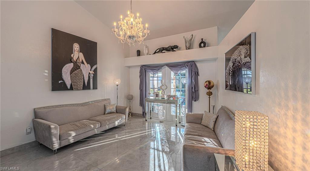 Beautiful contemporary home located on a highly desired street at the end of a quiet cul-de-sac. French doors open to a large, private lanai featuring a pool—perfect for indoor-outdoor living. The oversized lot is beautifully landscaped and includes a paver driveway and stunning 32’ x 32’ floor tiles throughout. Some of the other features are all plumbing replaced, new appliances and HVAC! The kitchen and bathrooms have been updated, and a convenient 2ndl bathroom provides direct access to the pool. Low association fees include wonderful amenities such as pickleball courts and a nine-hole par-three golf course. Ideally situated in one of South Lee County’s finest locations, directly across from Coconut Point. Not located in a flood zone. Plenty of Bling here ....so BLING YOUR CLIENTS!!!! EASY TO SHOW