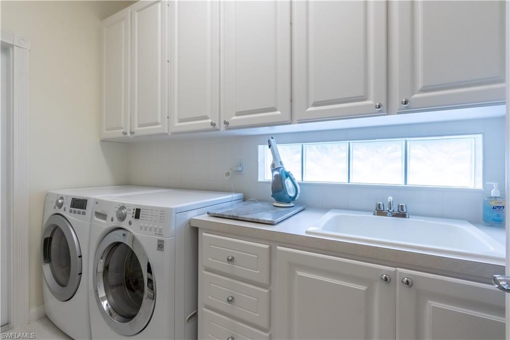Here is your opportunity for expansive living in this furnished, four bedrooms/three bath Carlyle model executive home. Located within the gated community of VeronaWalk, this original DiVosta built, poured concrete home is a splendid space for entertaining. A new roof and Generac whole house generator are incredible upgrades. Offering both a formal living (with a wall of tall windows) and dining room, in addition to, a more relaxed lounge and eating space, you have room to stretch out. The floor plan offers a split bedroom layout for the ultimate in privacy when housing overnight guests. A centrally located kitchen has an abundance of cabinetry, granite counters with additional seating and stainless appliances (double-oven range). The adjoining casual living area allows the chef to be a part of all get togethers. A full laundry room off of the two-car garage has a front load washer/dryer duo, more storage and a wash sink. Flooring throughout the home is tile or neutral shade carpet for ease in decorating choices. The primary suite is accessed through a double door. Enjoy the water view from your bed or step outdoors from your private sliding door. An attached bath has a deep soaking tub, a large tiled shower and dual vanities. A covered, screened lanai and an open-air patio look out onto your extended lot with spacious lawns and a wide water view. This home is a gem for gathering friends and family.