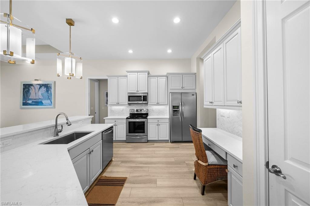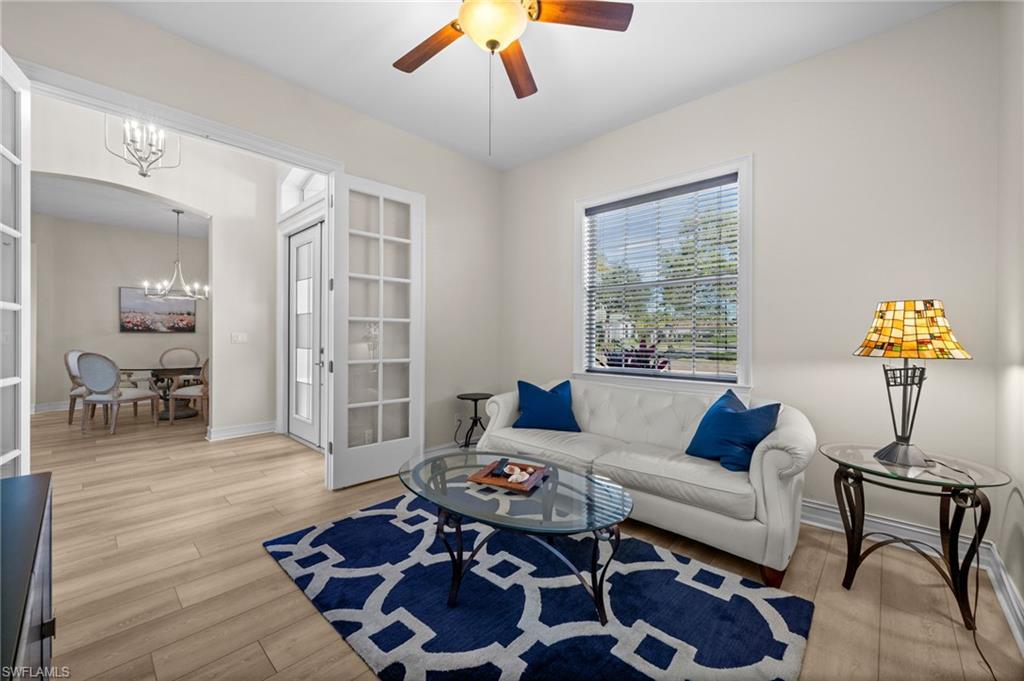 Welcome to this beautiful 4-bedroom plus den, 3-bath pool home located in the desirable gated community of Il Regalo. Designed with a bright and open floor plan, this residence offers both functionality and style, featuring a spacious formal dining room, expansive living area, and a private den or office accented by elegant glass French doors. The well-appointed kitchen showcases granite countertops, stainless steel appliances, tile backsplash, a built-in desk area, and breakfast bar with seating for up to five—perfect for casual dining and entertaining. Retreat to the generous primary suite with tray ceiling, sliding glass doors to the lanai, dual custom closets, and a spa-like bath complete with double vanities and a separate soaking tub. Step outside to the oversized screened lanai featuring a solar-heated pool and tranquil lake views, creating an ideal setting for relaxation or gatherings. Il Regalo is an intimate, family-friendly community of only 35 homes with low association fees, centrally located off Orange Blossom Drive and just minutes from shopping, dining, and Naples’ beautiful beaches. Zoned for the highly sought-after Pelican Marsh Elementary, Pine Ridge Middle, and Barron Collier High School. A wonderful opportunity to own a spacious, well-located home in a premier Naples neighborhood.