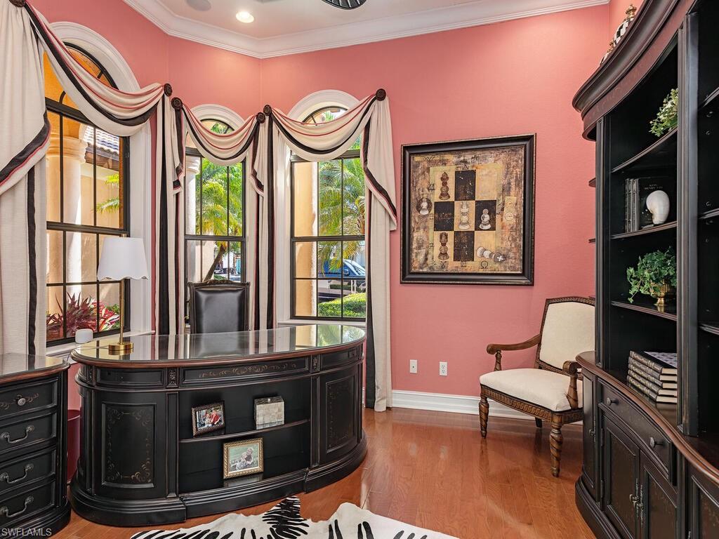Welcome to your dream home, located just five blocks from the breathtaking Gulf of Mexico and its pristine white sandy beaches. This beautiful residence is perfectly positioned to enjoy the vibrant lifestyle of Old Naples, with its charming shops and exquisite dining options just minutes away. Meticulously maintained, this home is in pristine condition and ready for you to move in. As you enter, you'll be greeted by an inviting open floor plan that seamlessly connects the family room and kitchen to the dining and living areas, all adorned with elegant marble flooring.The spacious master bedroom retreat features a cozy sitting area and a luxurious en-suite bathroom, providing the perfect sanctuary for relaxation. In addition to the master suite, the home offers three additional bedrooms and three bathrooms, along with a versatile flex room currently used as a fifth bedroom, and a dedicated office space for your convenience.The property also boasts a three-car garage with a stylish epoxy floor finish, ensuring both functionality and aesthetic appeal. Step outside to the lanai, where you'll find a newer panoramic pool screen that offers stunning views of the lush tropical landscaping. The inviting pool and spa, complete with a serene waterfall, are surrounded by exquisite travertine and are heated by both electric and solar systems, making it perfect for year-round enjoyment. The exclusive Moorings Beach Park is within walking distance, offering private parking and a beautiful park setting complete with a gazebo. Membership is optional, and you’ll enjoy the added benefit of no HOA fees. For golf enthusiasts, an optional membership to the Moorings Golf Club is also available.This exceptional property combines luxury, convenience, and a prime location, making it the perfect place to call home. Don’t miss your chance to experience the best of Naples living!