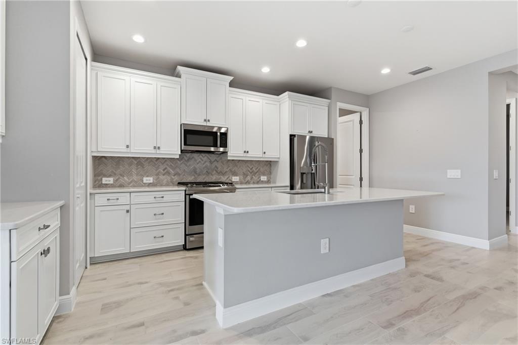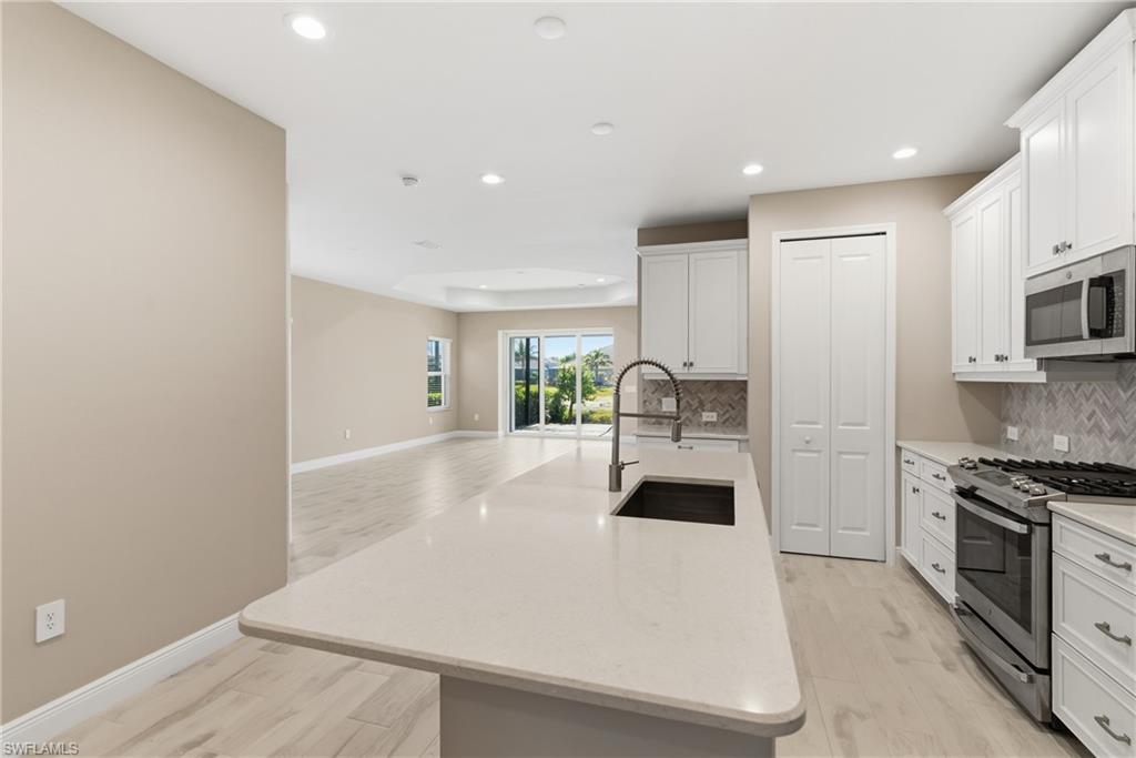Experience the exceptional Naples, Florida lifestyle at 2118 Marquesa Circle in beautiful Naples, where comfort, style, and convenience come together in one stunning single level villa. This bright and beautifully designed residence offers 3 bedrooms plus a versatile den and 2 baths, with elegant tile flooring throughout the main living areas and plush comfort in the bedrooms. The chef’s kitchen is a true centerpiece, featuring natural gas cooking, stainless steel appliances, gleaming quartz countertops, and a generous center island perfect for gatherings with family and friends. The spacious great room flows seamlessly to an extended screened in lanai overlooking tranquil lake views which is an ideal setting for morning coffee or sunset relaxation. Just steps from the community pool, spa, and dog park, and complemented by low HOA fees, this home delivers effortless living. All of this is just a short drive from Naples pristine Gulf beaches, renowned dining, upscale shopping, and vibrant cultural attractions, making every day feel like a getaway.