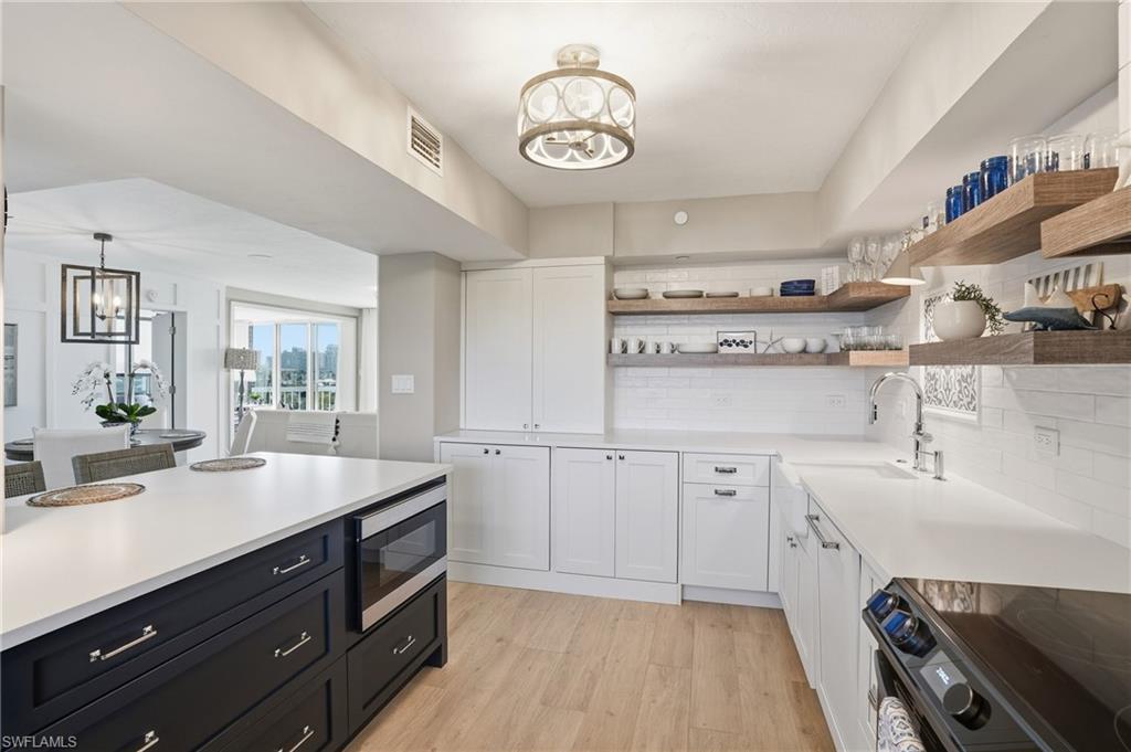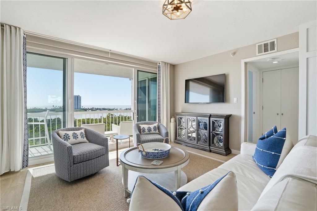 St. Tropez at Pelican Bay — Now Offered with a $100,000 Price Reduction! Wake each morning to sweeping panoramic views of Clam Pass and the shimmering Gulf beyond. This beautifully renovated two-bedroom plus den residence offers a front-row seat to Naples’ most captivating coastal scenery — and is now an even more compelling opportunity with a significant $100,000 price improvement. Finished with high-end details and designer furnishings, the home embodies refined coastal chic elegance. The reimagined kitchen serves as a welcoming focal point, ideal for entertaining or relaxed evenings at home, while the versatile den provides the perfect space for a home office or additional guest accommodations. A private beach tram provides effortless access to three miles of pristine white-sand beach. Pelican Bay residents enjoy exclusive access to two private beachfront clubs with chair and umbrella service, beachfront dining and bars, along with kayaks, sailboats, tennis, pickleball, and a staffed fitness center. St. Tropez features full-time on-site management, guest suites, assigned parking, climate-controlled storage, and a sunny poolside terrace with grills. Just minutes from Waterside Shops, this residence presents an exceptional value and rare opportunity to enjoy coastal living in one of Naples’ most prestigious communities.